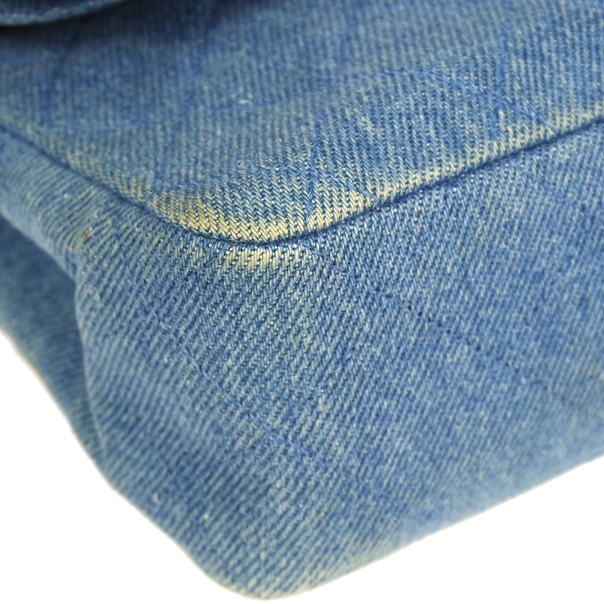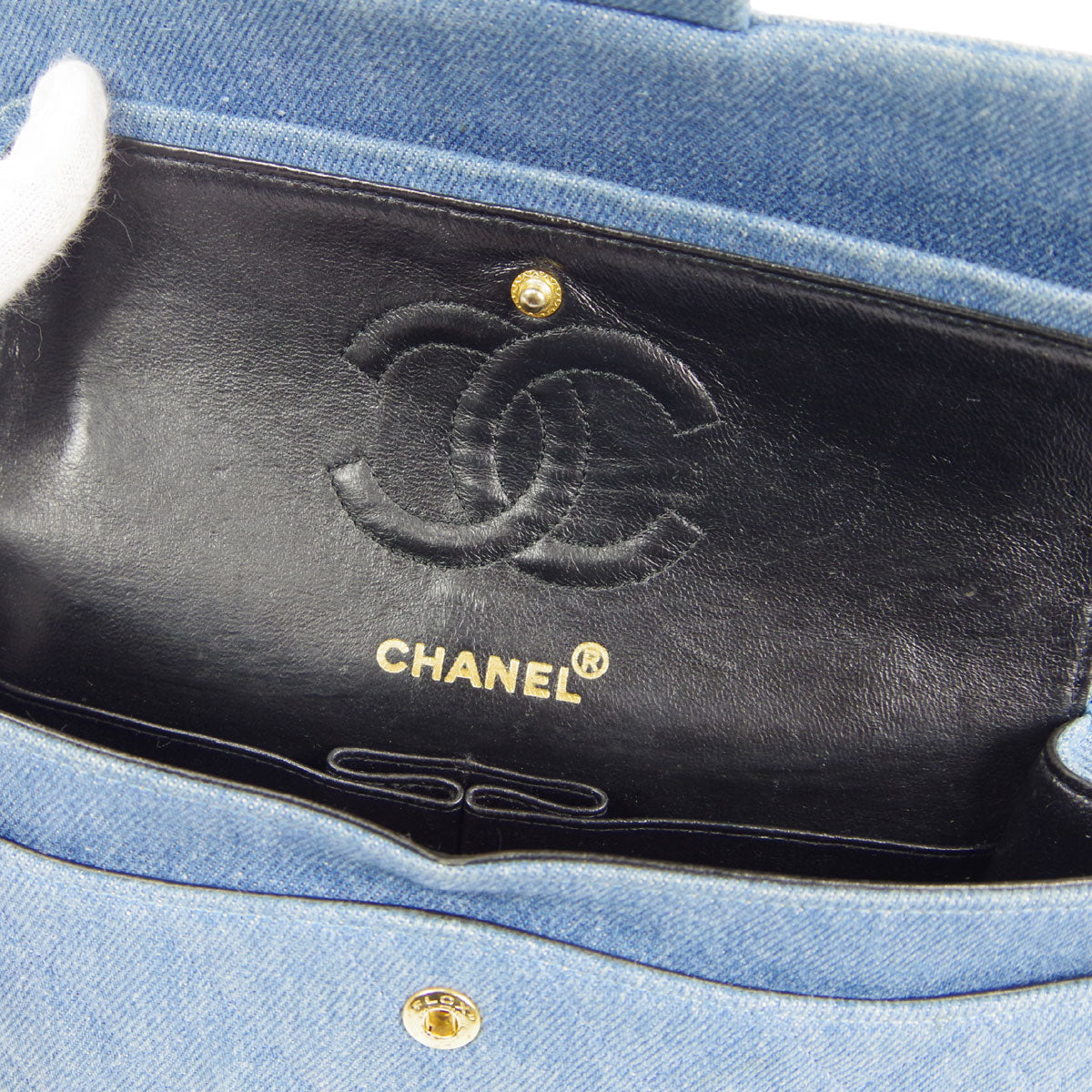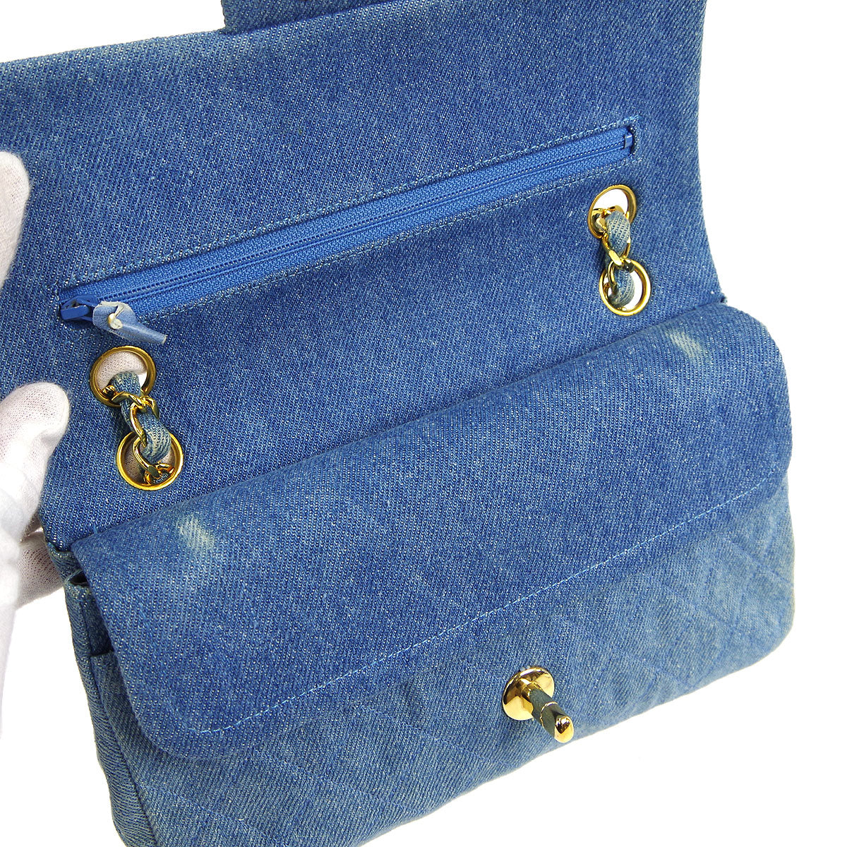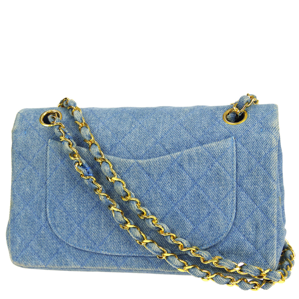 Chanel * 1989-1991 Classic Double Flap Small Shoulder Bag Blue Denim