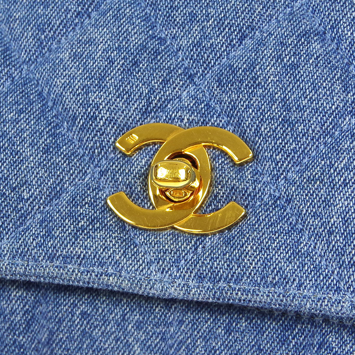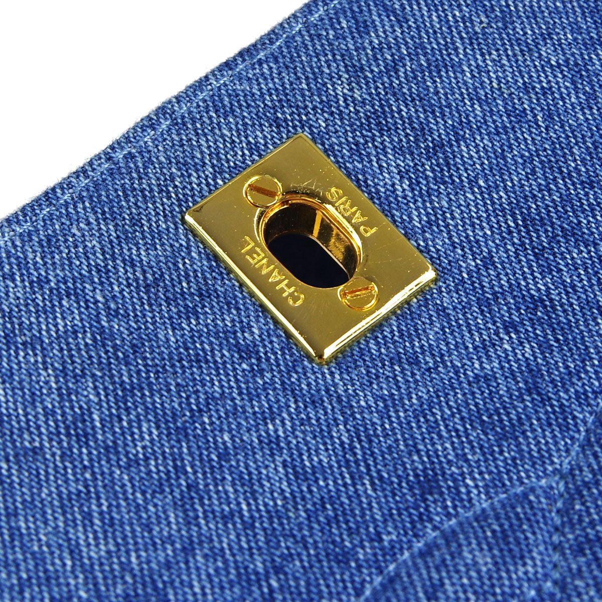 Chanel * Straight Flap Shoulder Bag Blue Denim