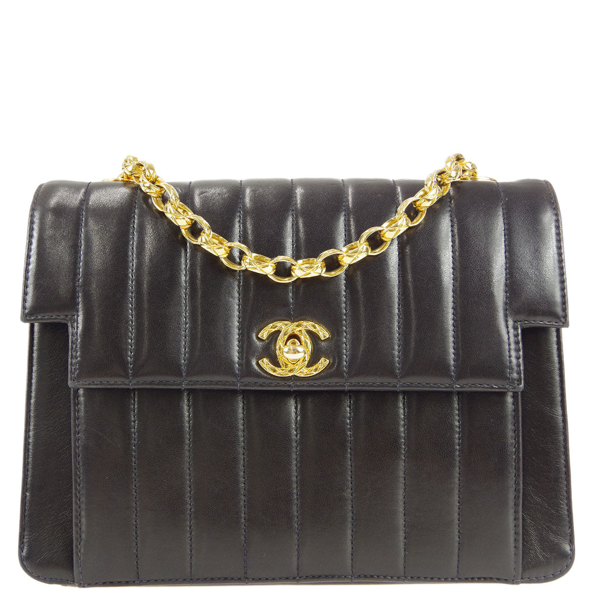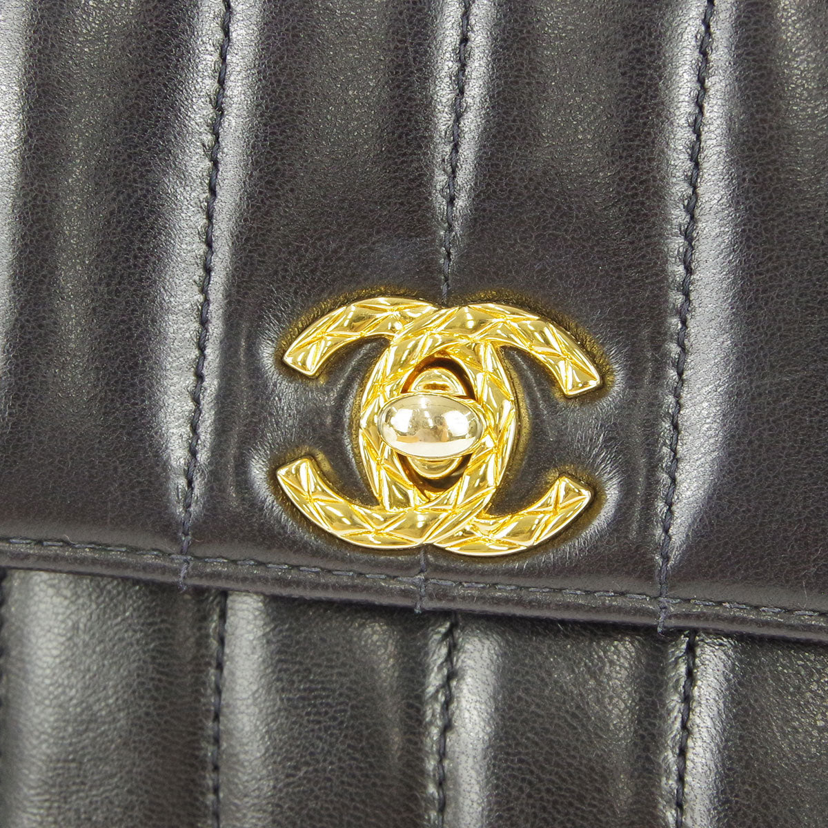 Chanel * 1991-1994 Black Lambskin Mini Vertical Stitch Flap Bag