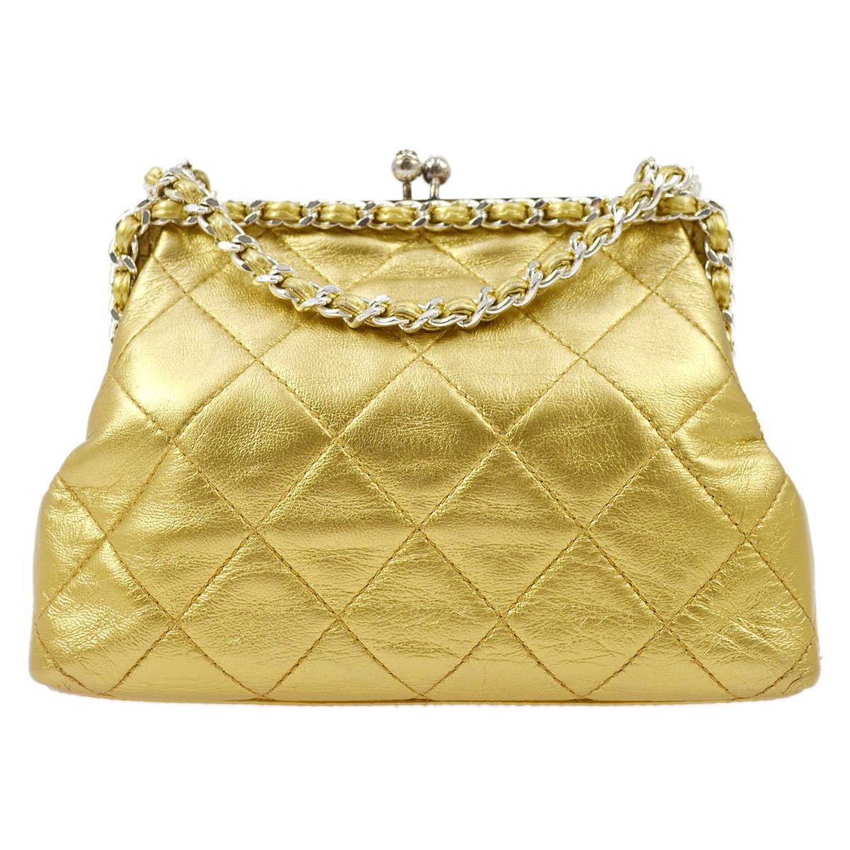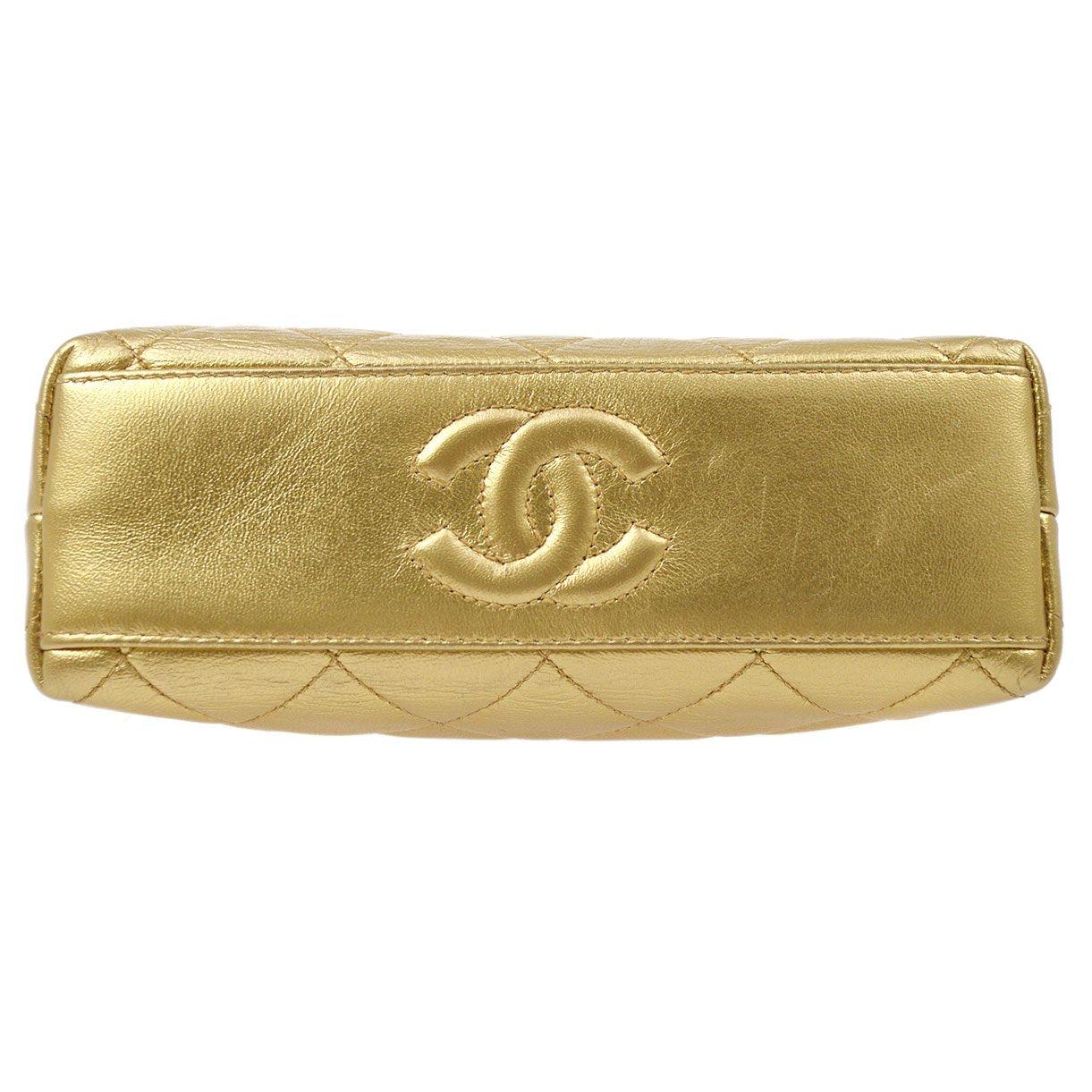 CHANEL 1994-1996 Gold Lambskin SHW Kisslock Shoulder Bag