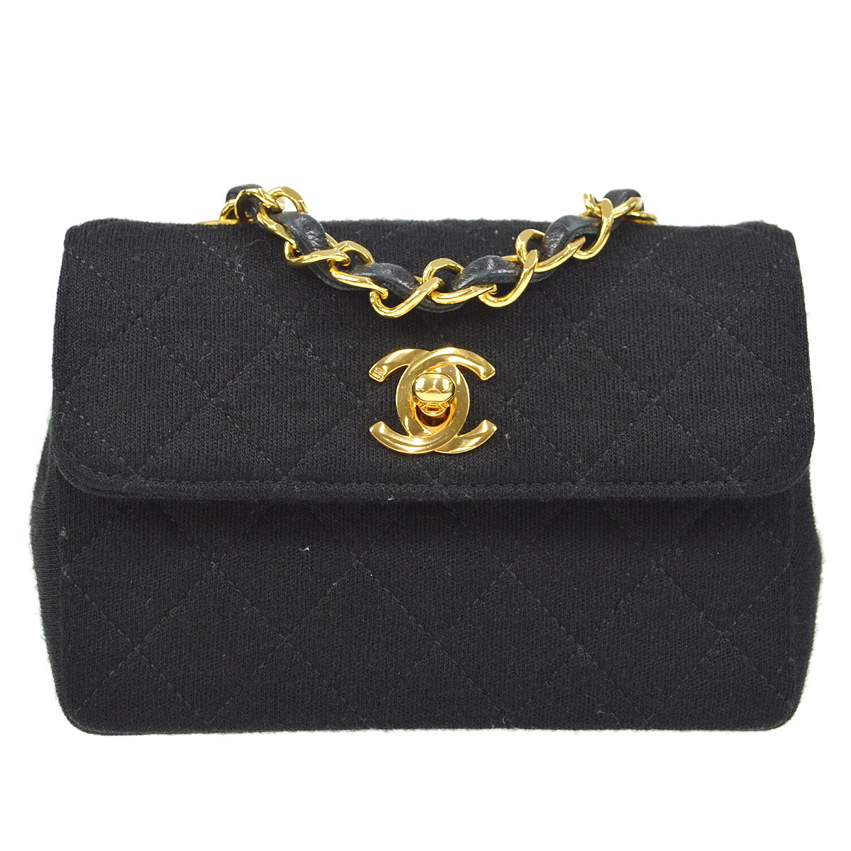 | CHANEL Chain Shoulder Bag Black Cotton | |