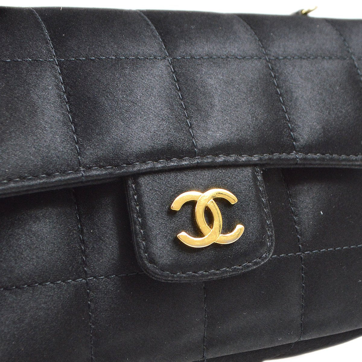 CHANEL 2009-2010 Camellia Choco Bar Single Chain Shoulder Bag Black Satin