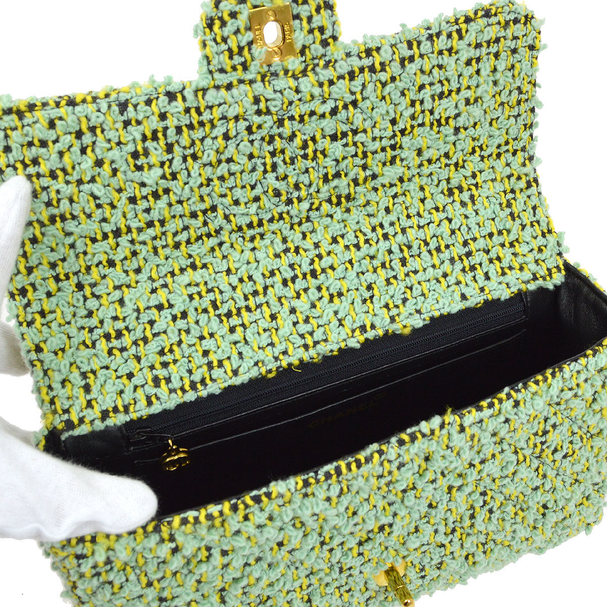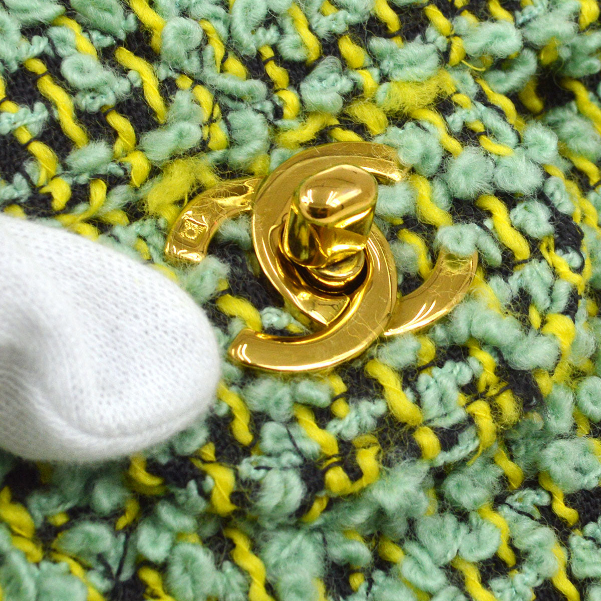 CHANEL * 1994 Classic Flap Handbag Medium Green Tweed