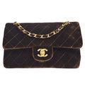 CHANEL * 1994-1996 Classic Double Flap Small Brown Velvet