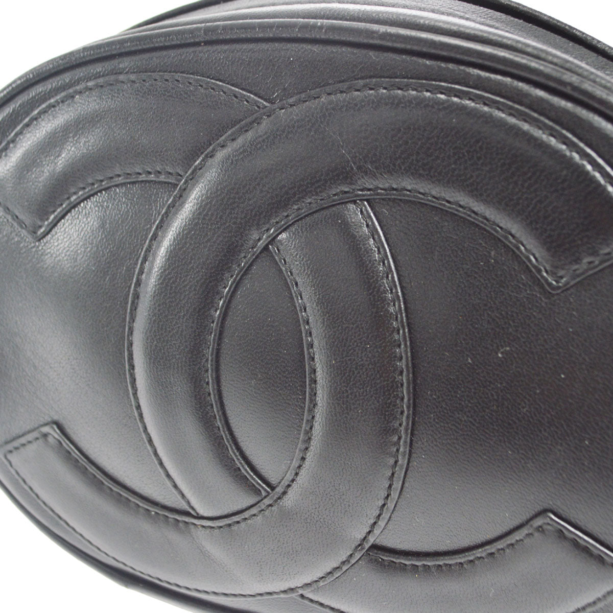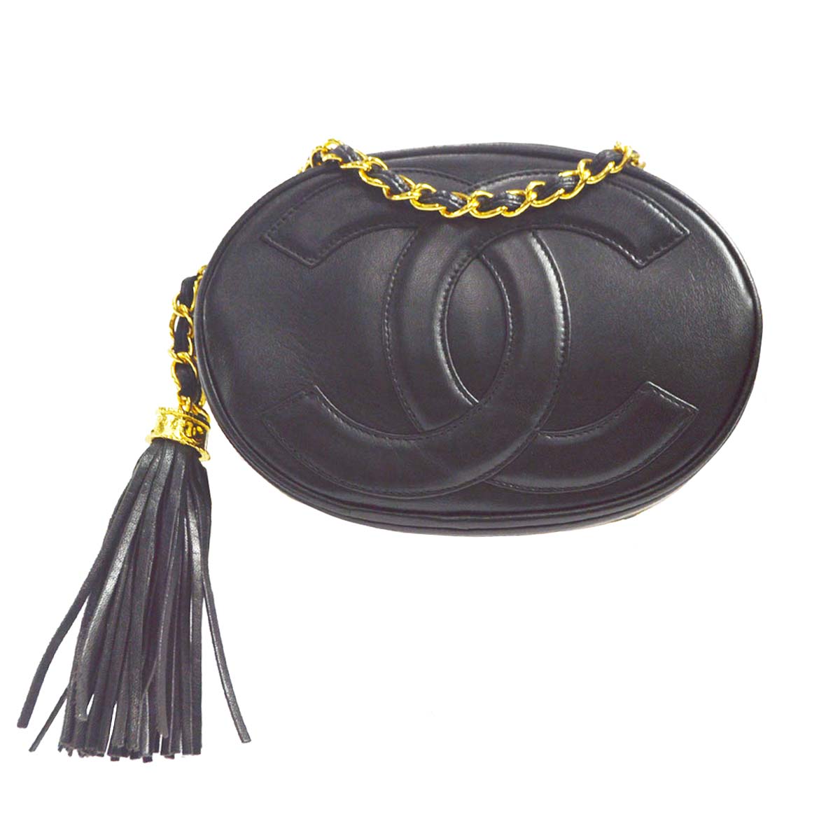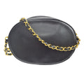 CHANEL 1989-1991 Oval Shoulder Bag Black Lambskin