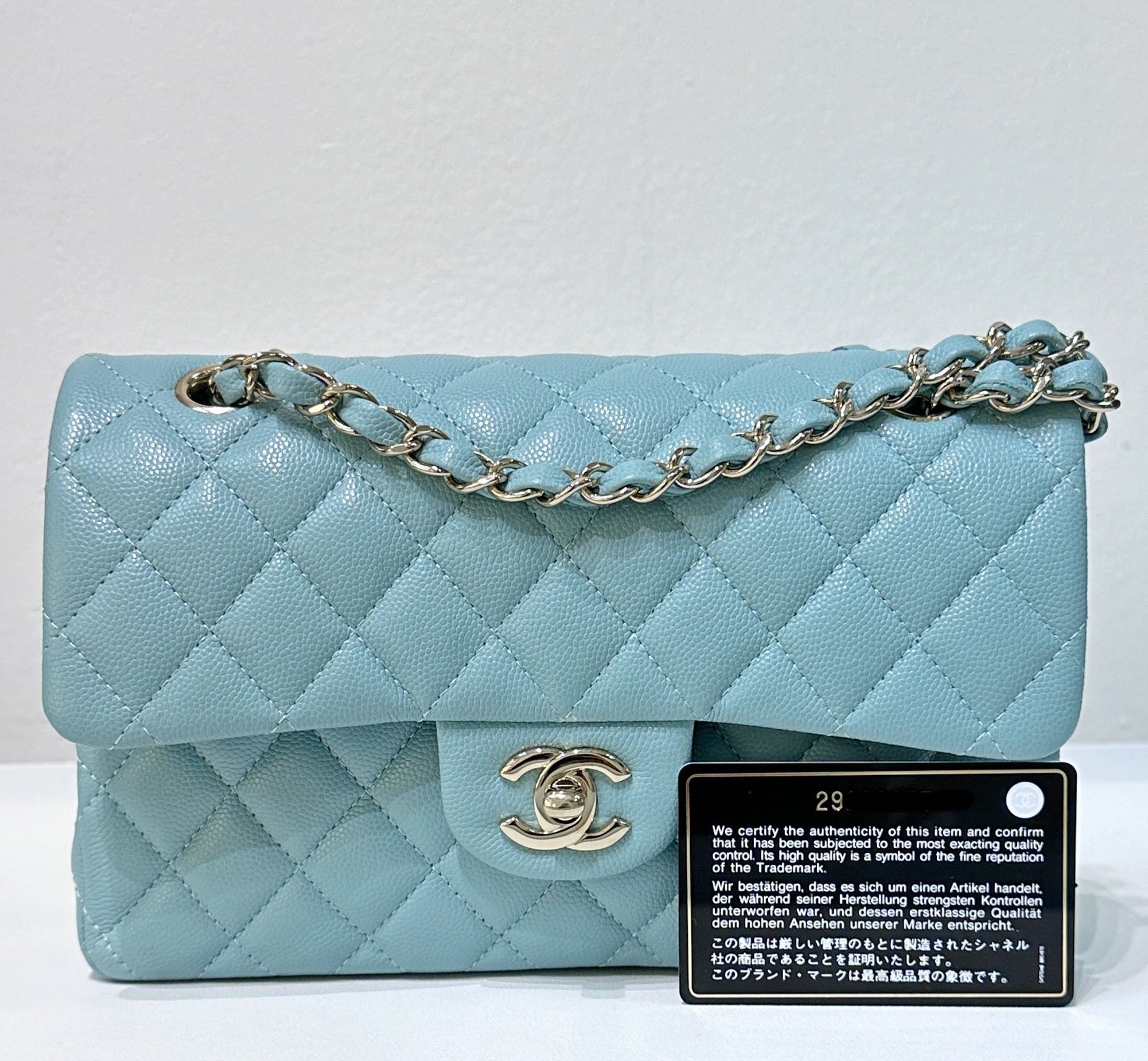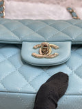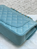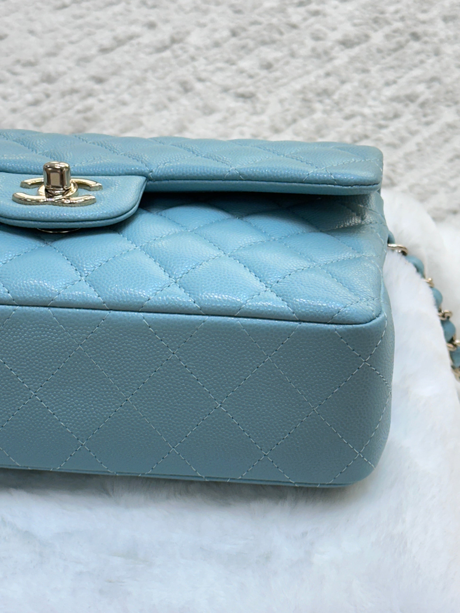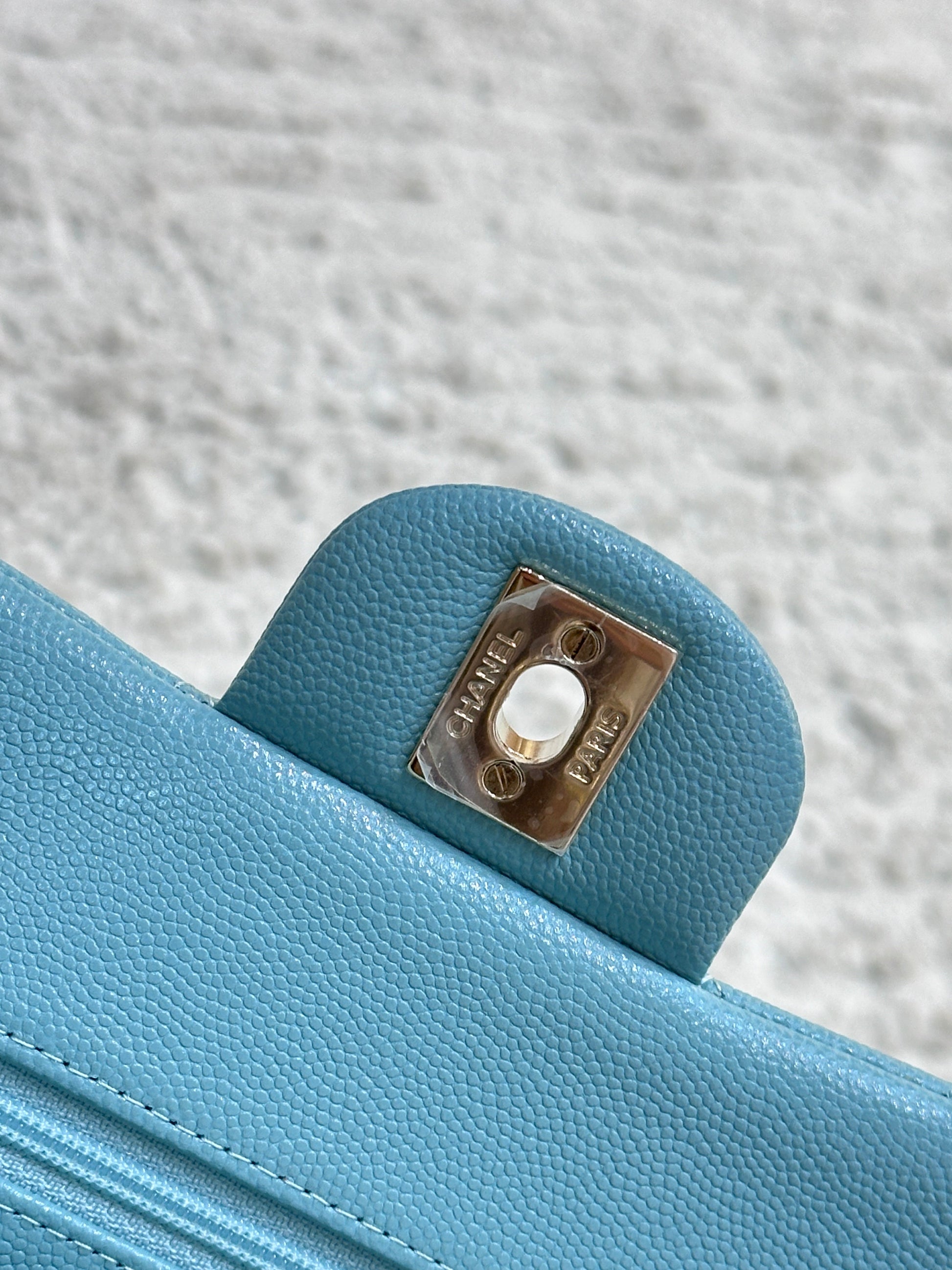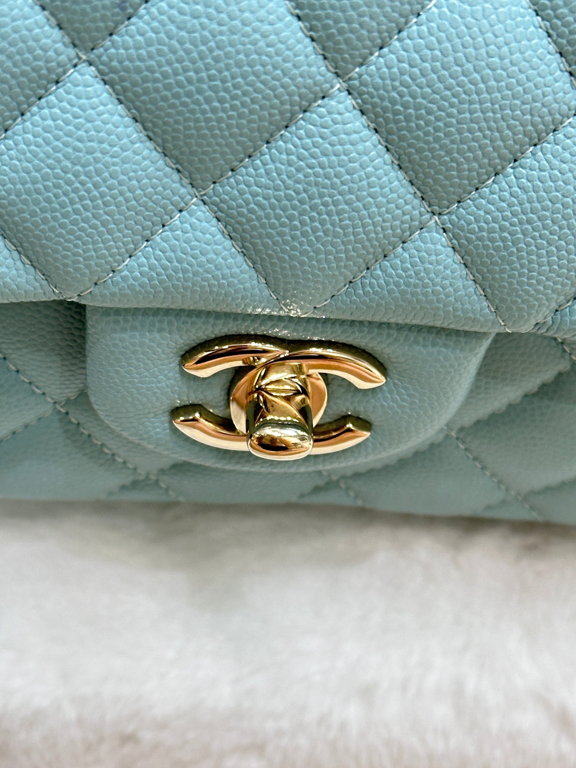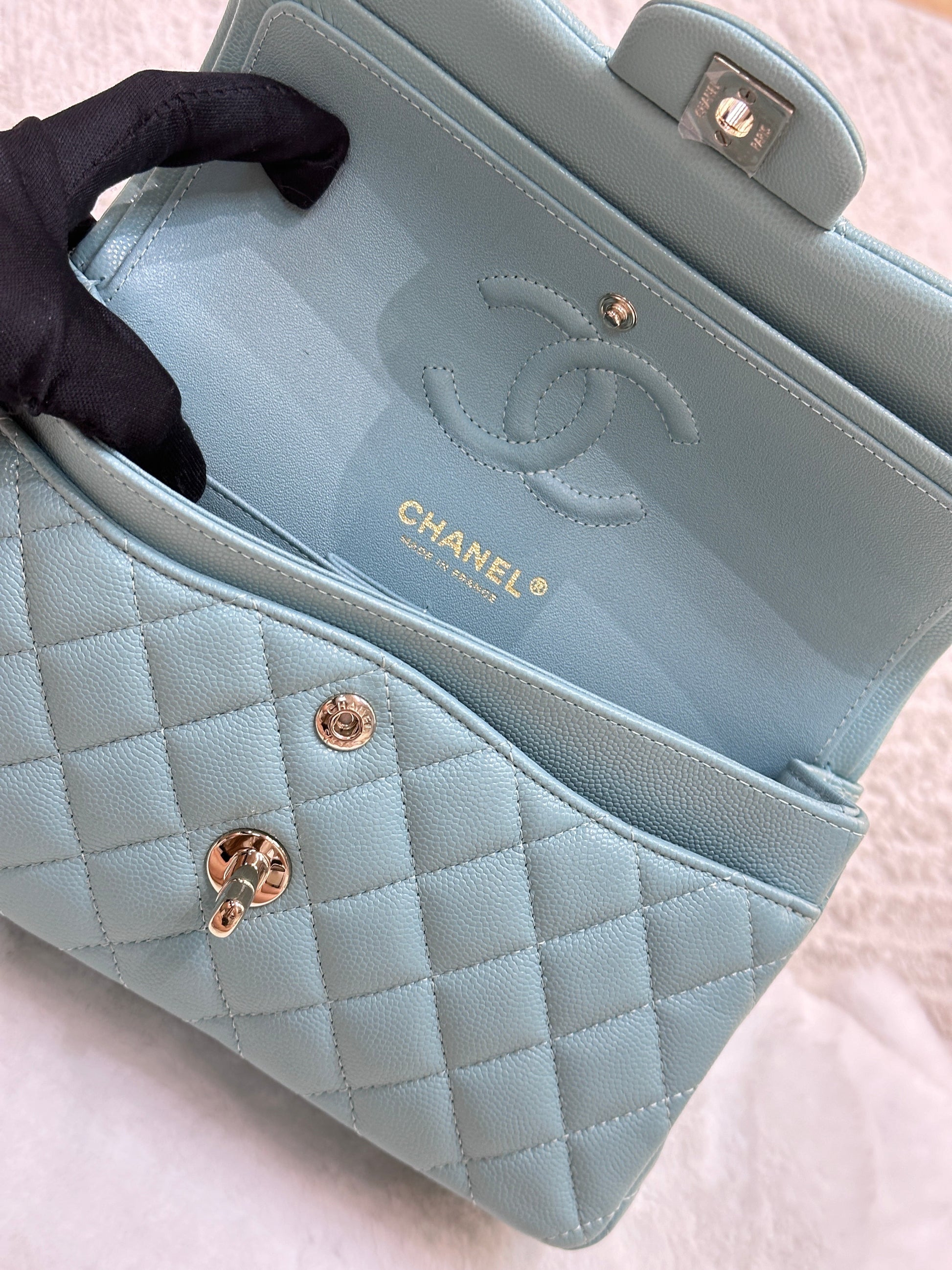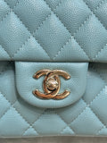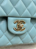 Chanel Small Classic Caviar Double Flap Tiffany Blue 20C GHW