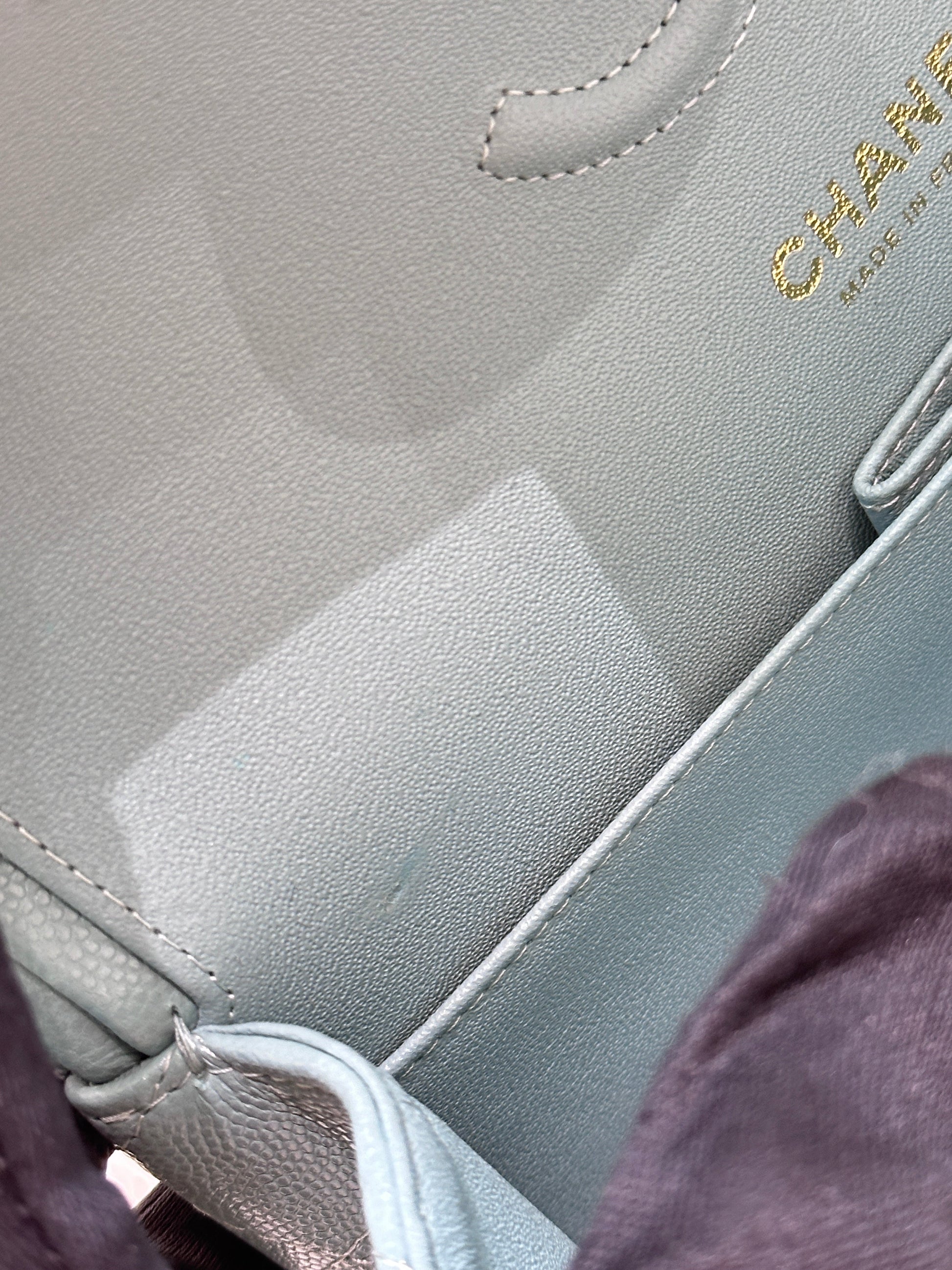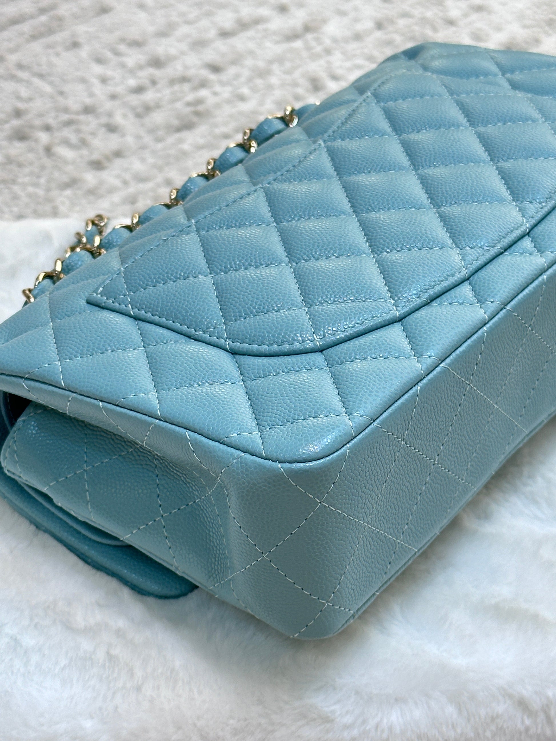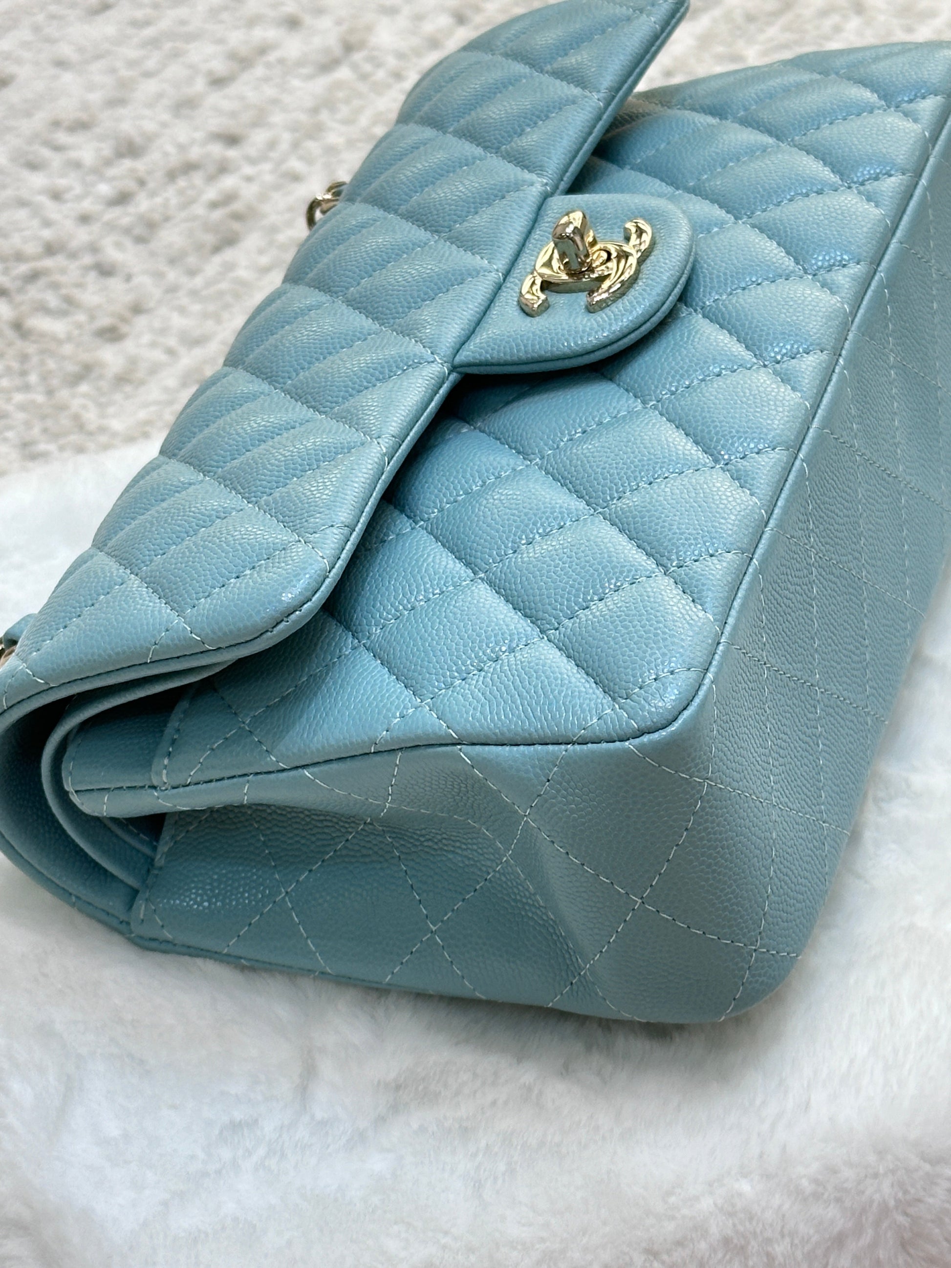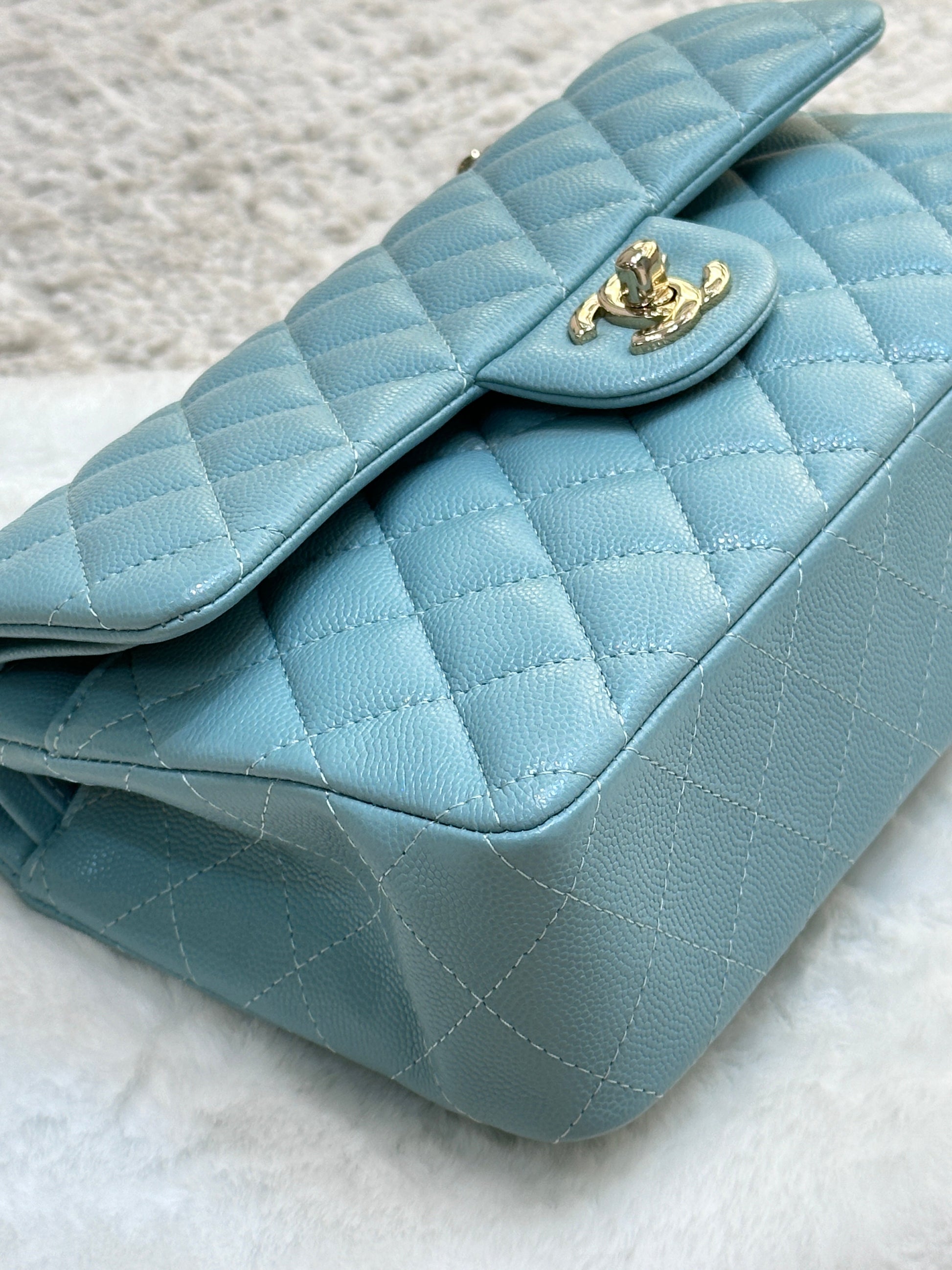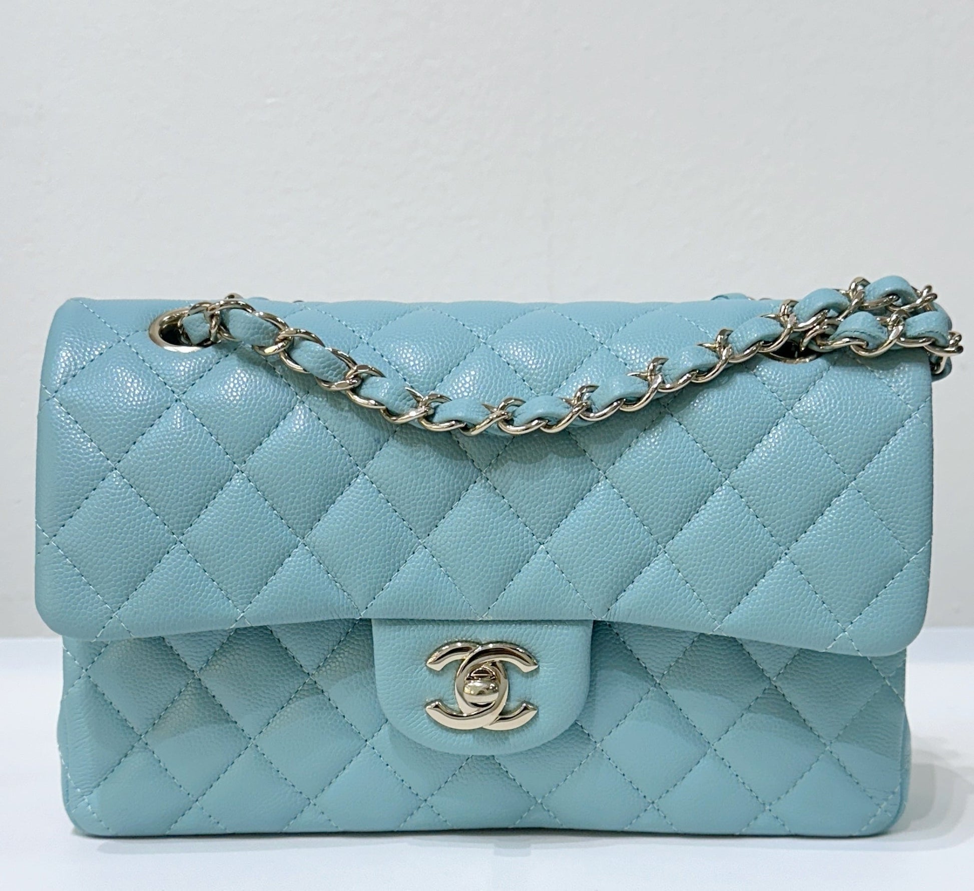 Chanel Small Classic Caviar Double Flap Tiffany Blue 20C GHW