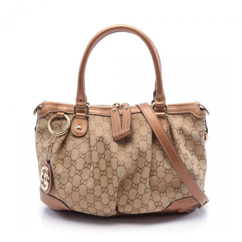 Gucci Sukey GG Canvas Handbag Canvas Leather Beige Brown