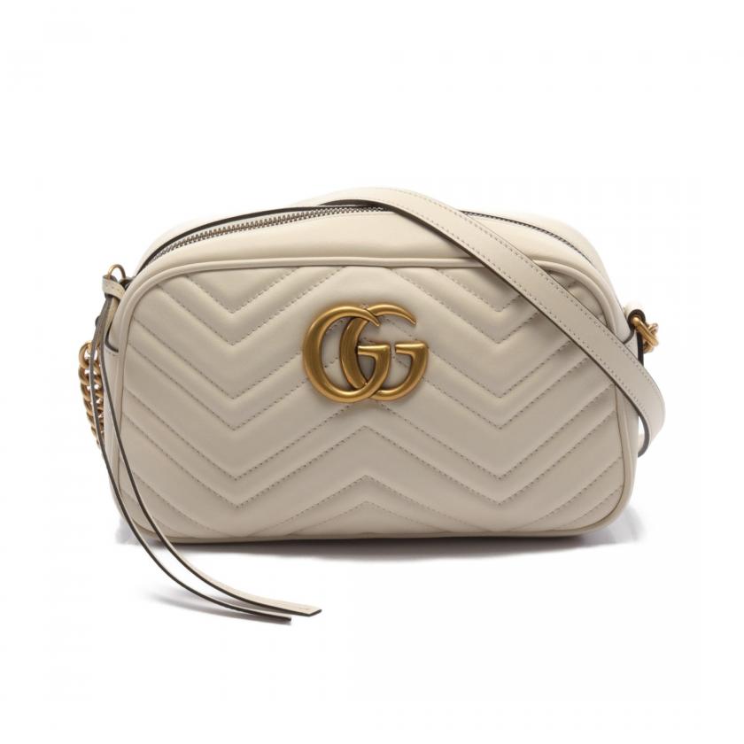Gucci GG Marmont Chain Shoulder Bag Leather Off White 880201