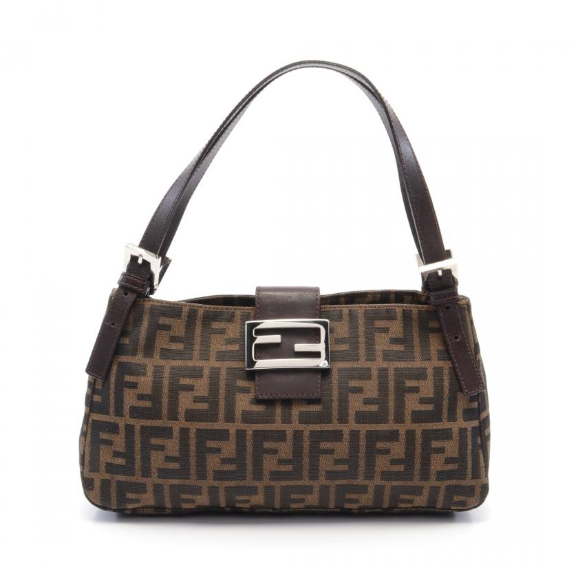 Fendi Zucca Shoulder Bag Canvas Leather Brown Dark Brown 880222