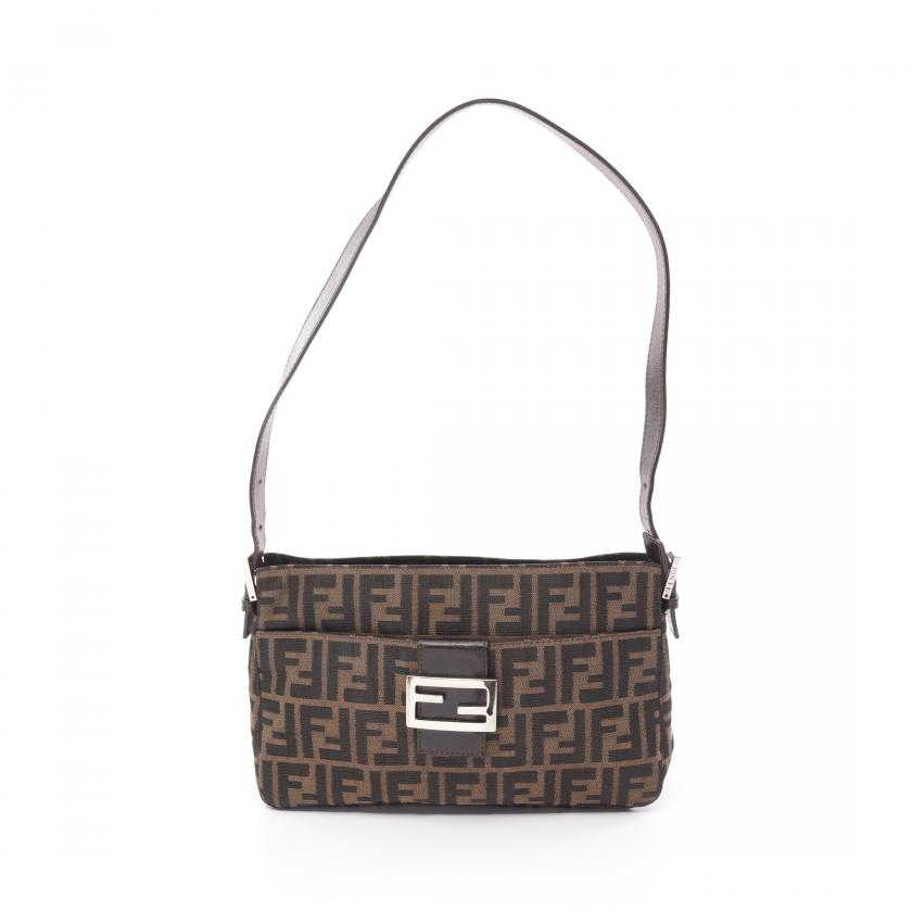Fendi Zucca One Shoulder Bag Canvas Leather Brown Dark Brown