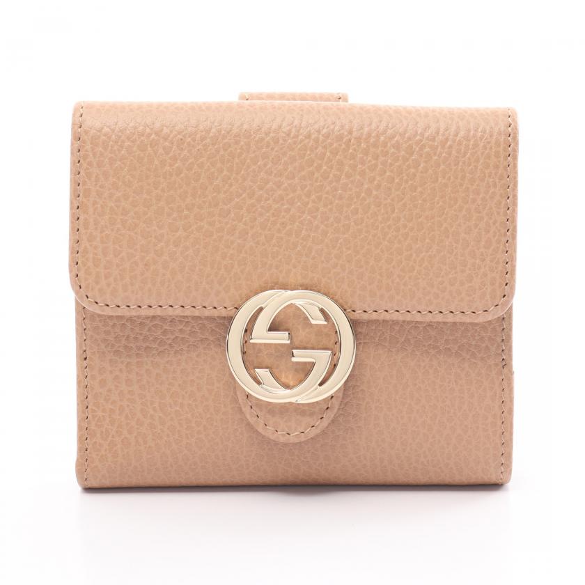 Gucci Interlocking G Bi-Fold Wallet W Hook Wallet Leather Beige 886177