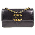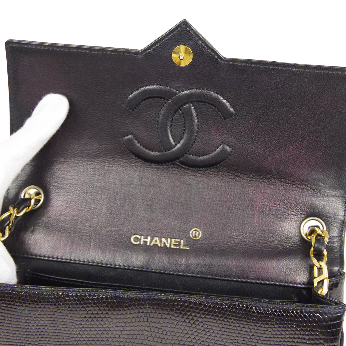 CHANEL * Single Chain Shoulder Bag Black Lizard