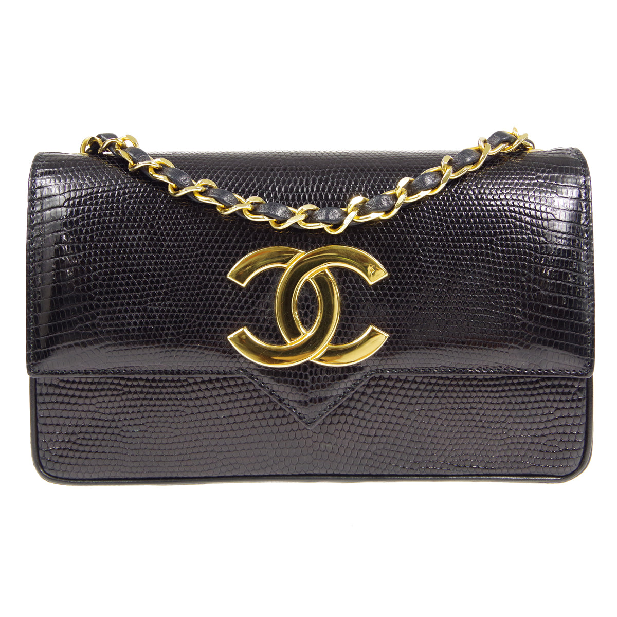 | CHANEL Single Chain Shoulder Bag Black Lizard | |