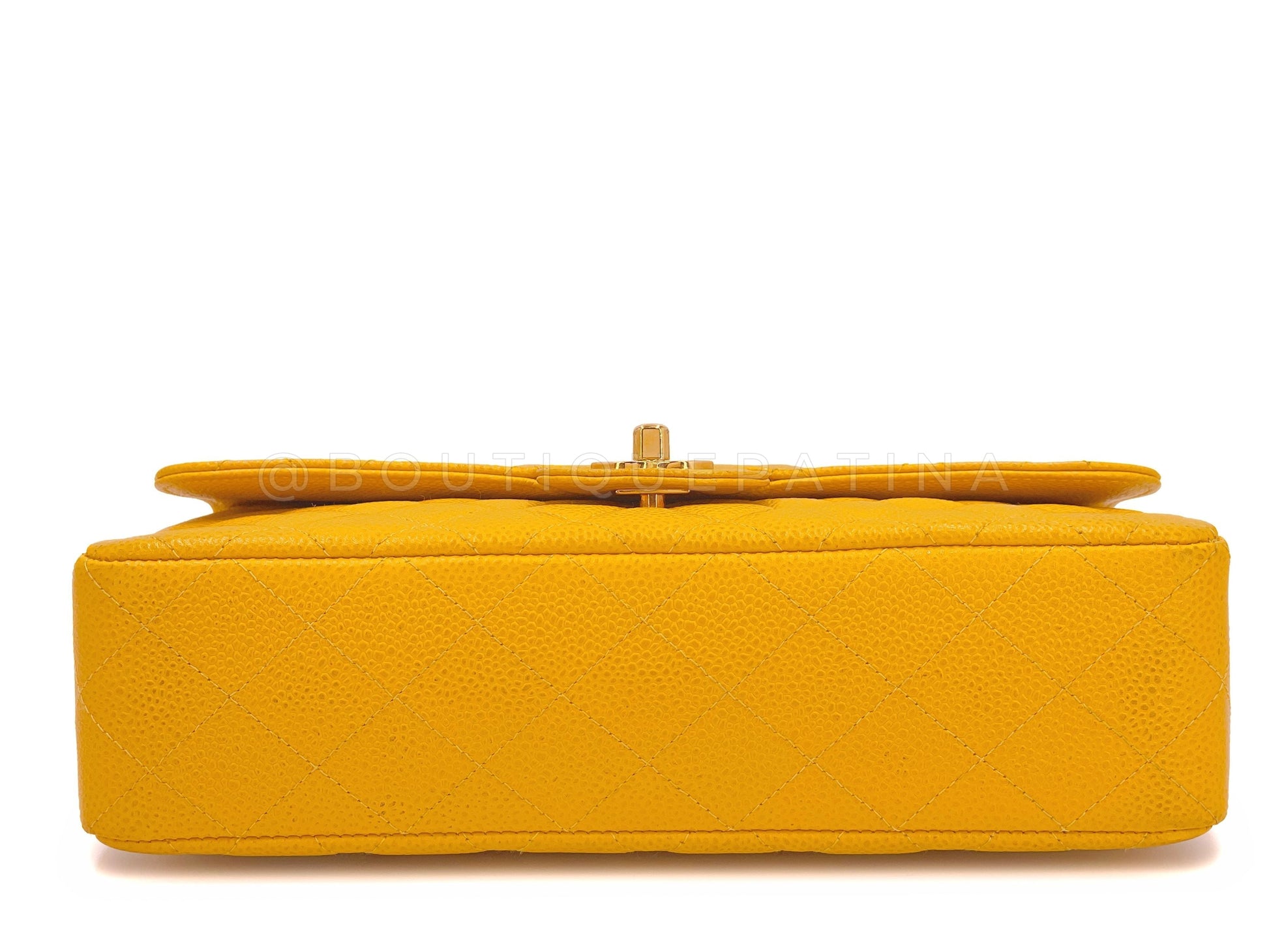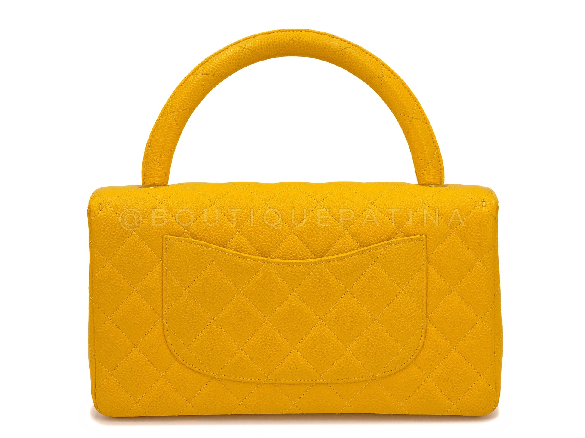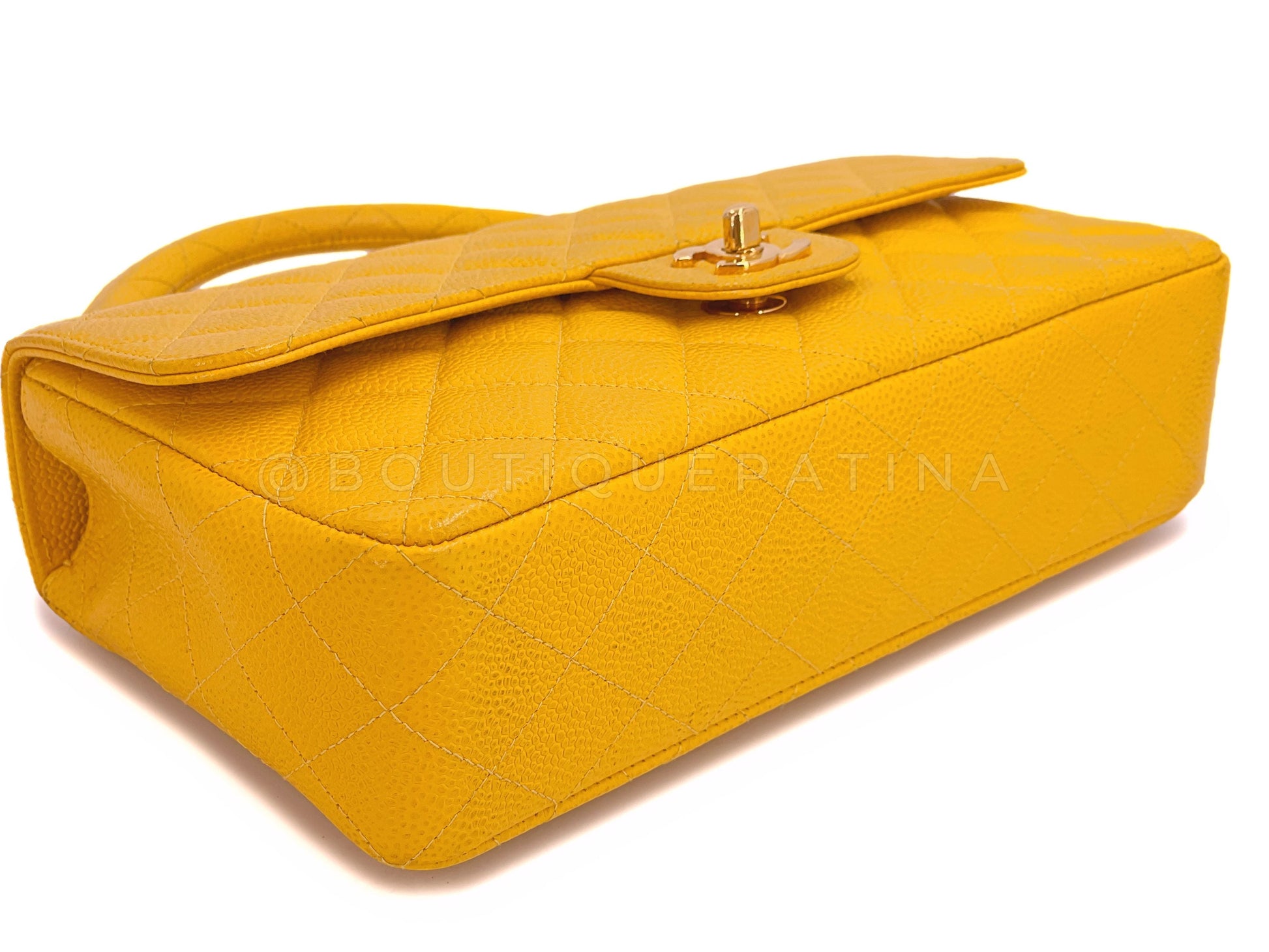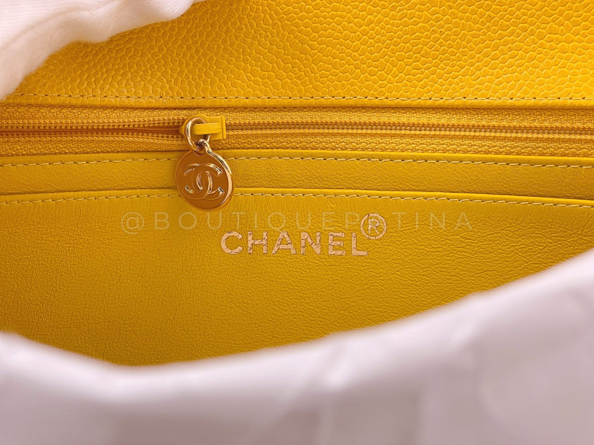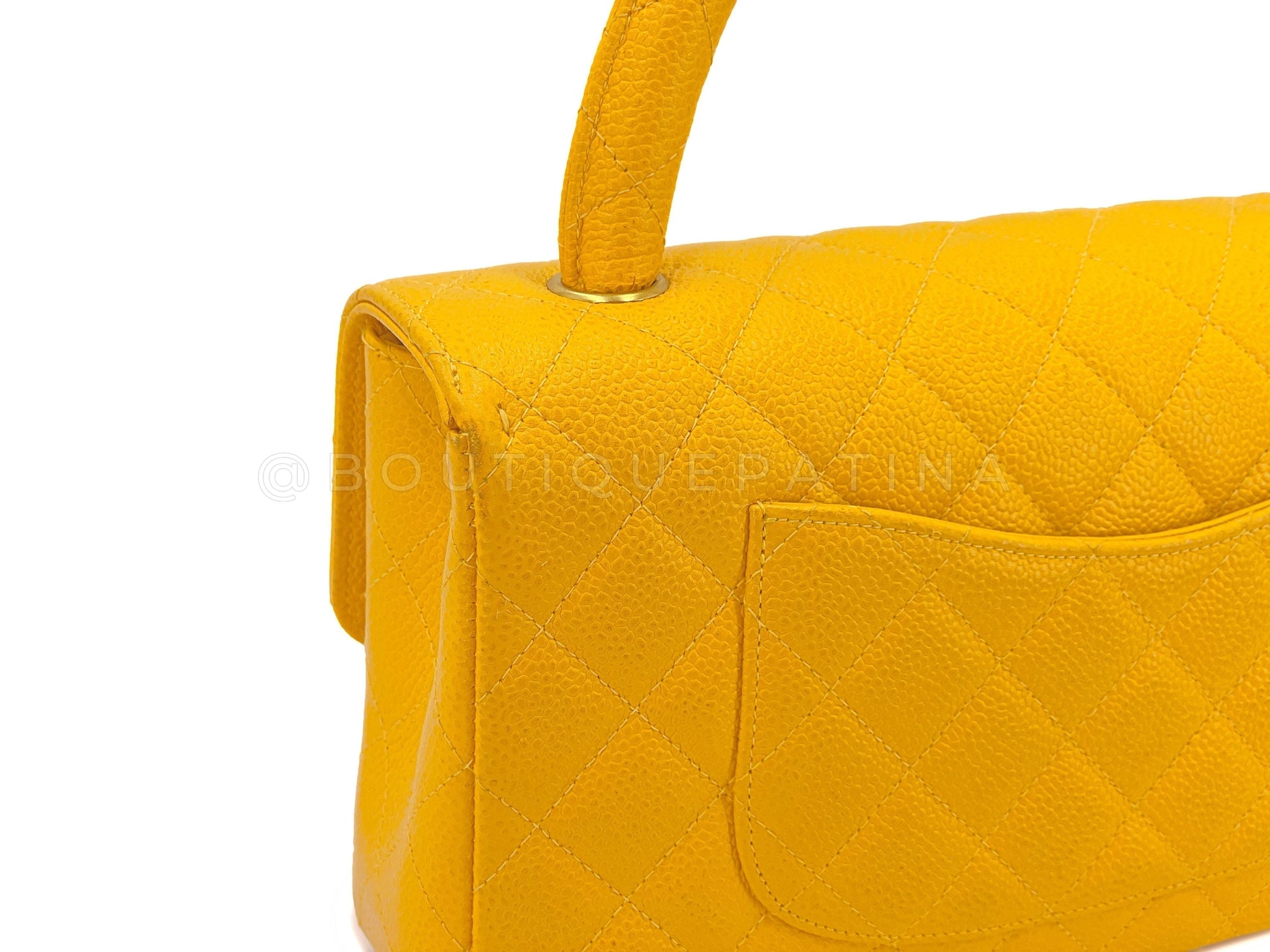 Chanel 1997 Vintage Canary Yellow Caviar Kelly Flap Parent Bag 24k GHW