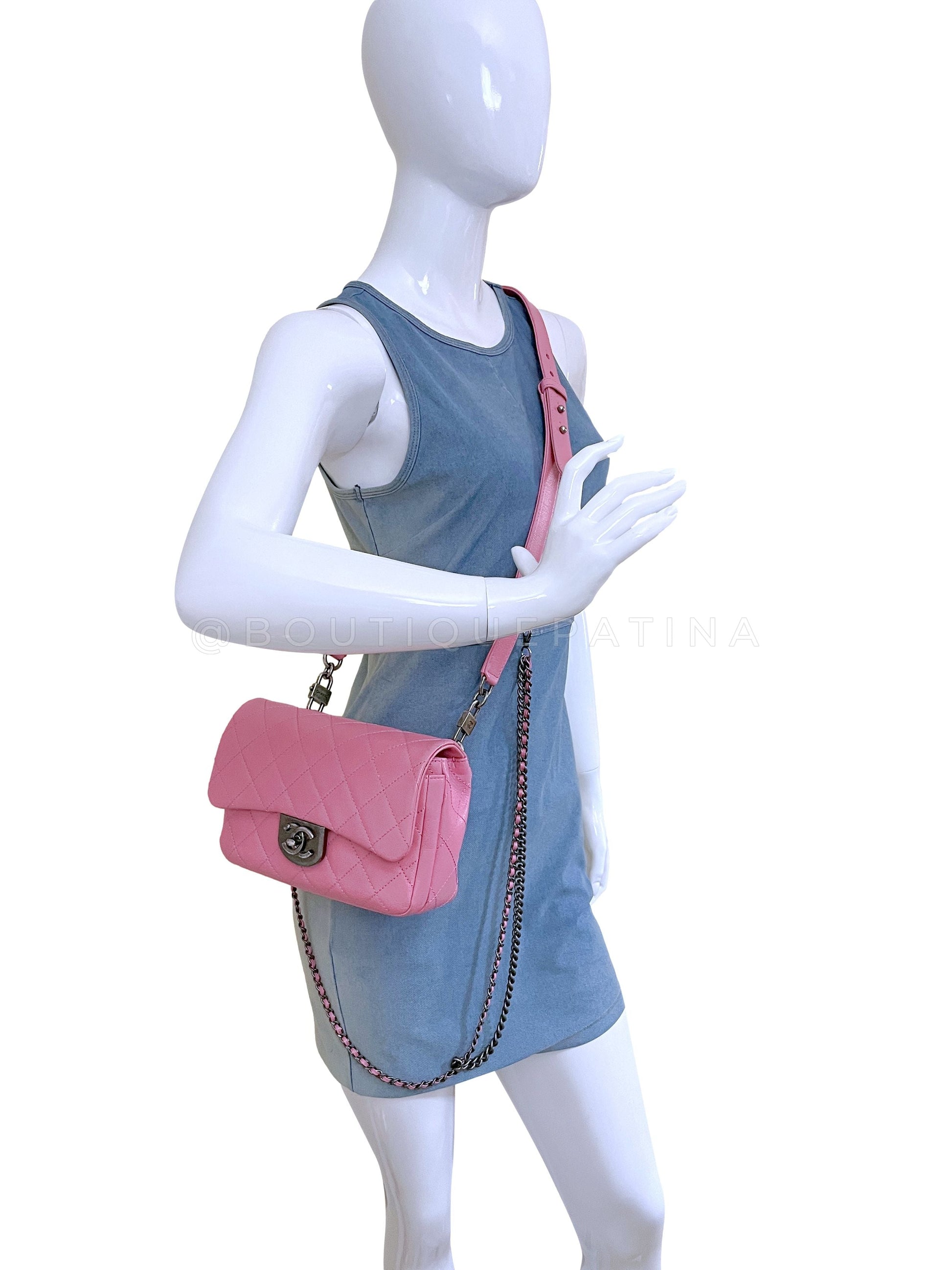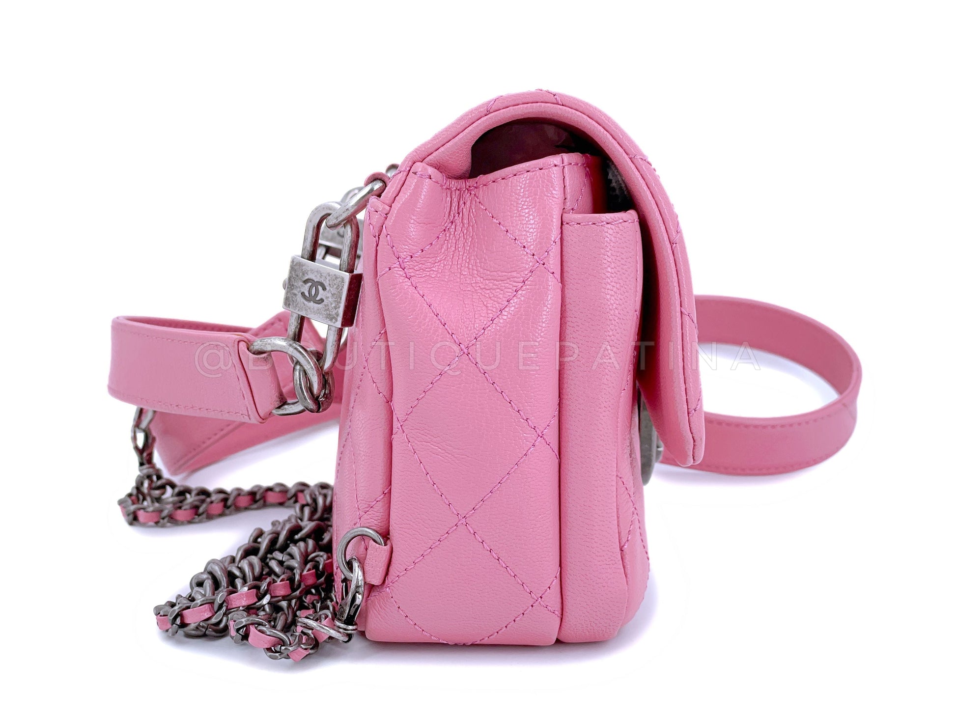 Chanel 2015 Pink Goatskin Double Carry Multichain Quilted Medium Flap Bag RHW