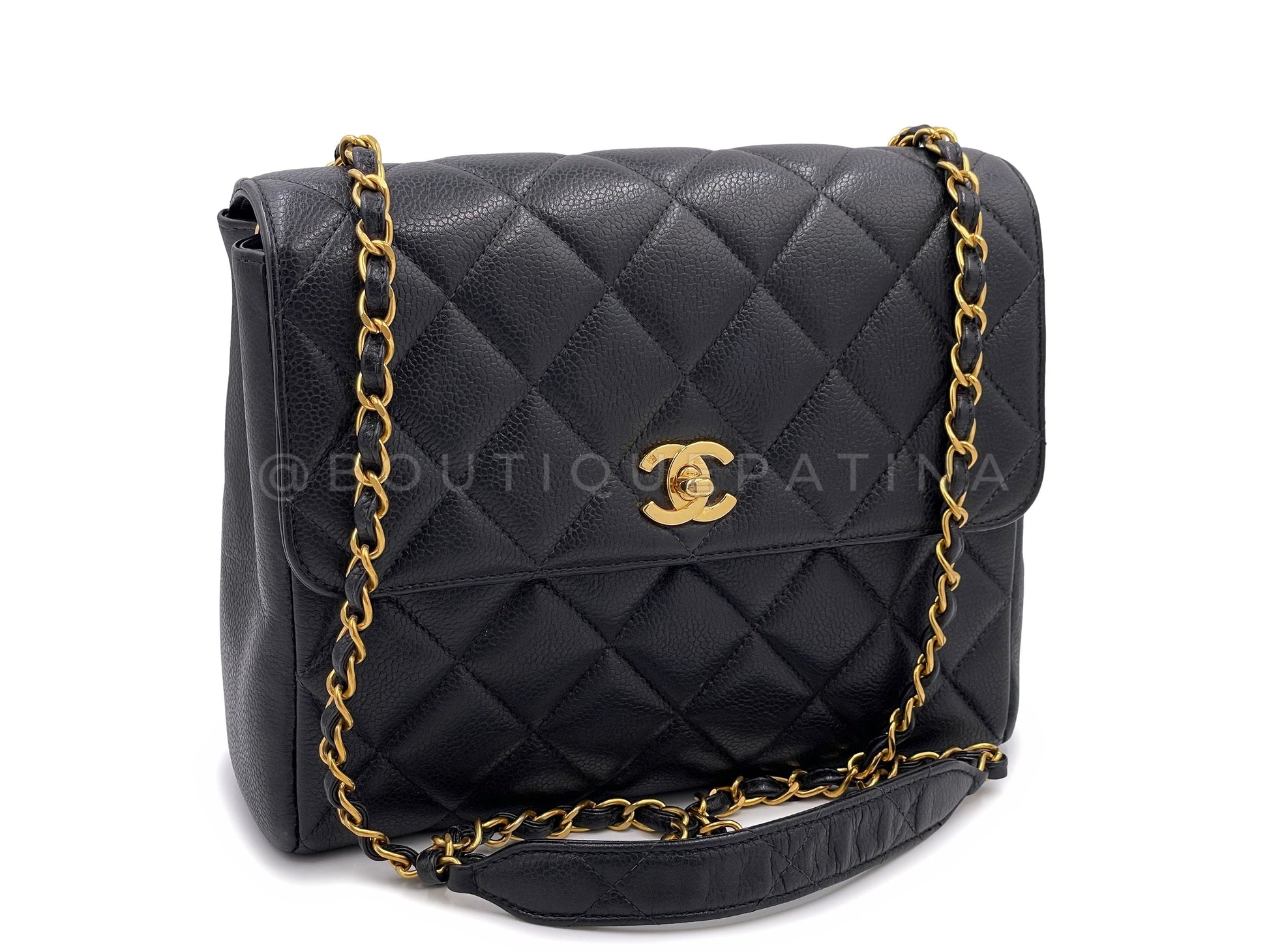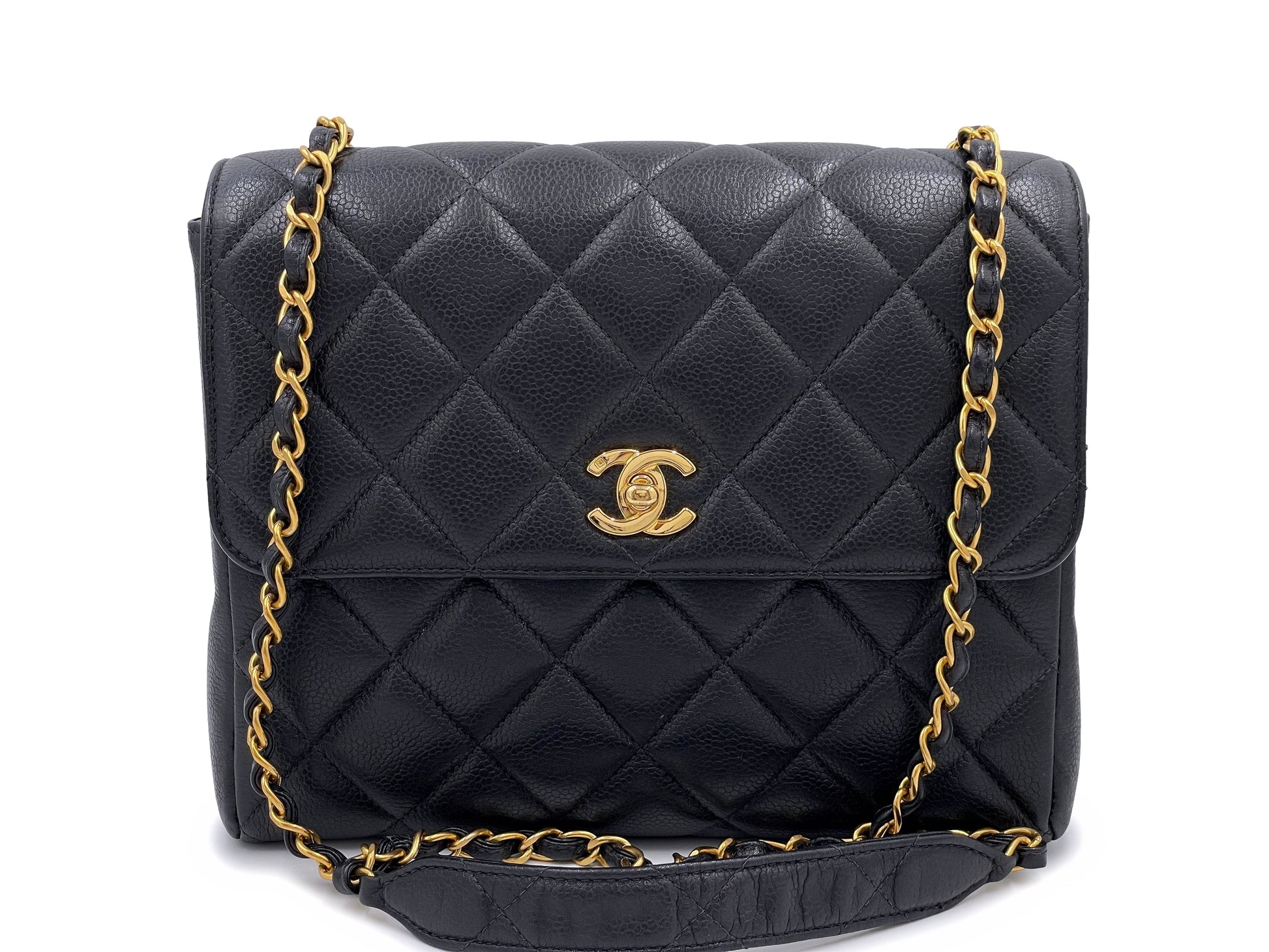 Chanel 1996 Vintage Black Caviar Square Crossbody Flap Bag 24k GHW