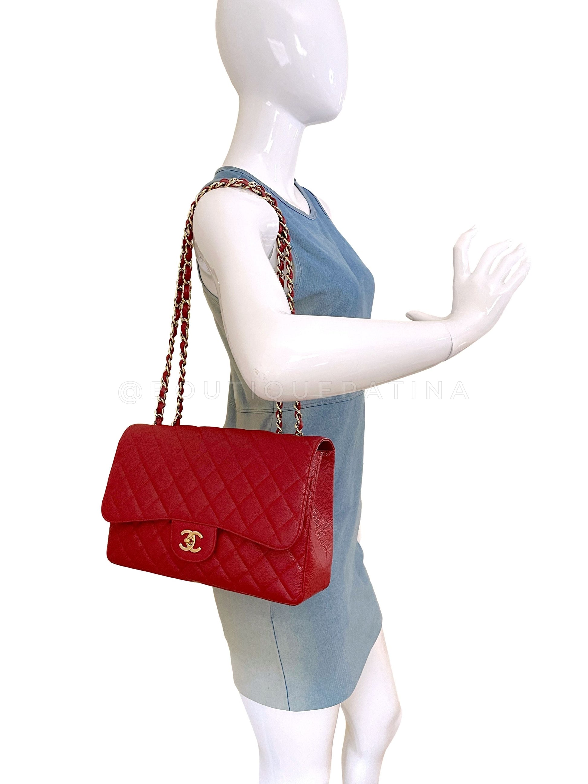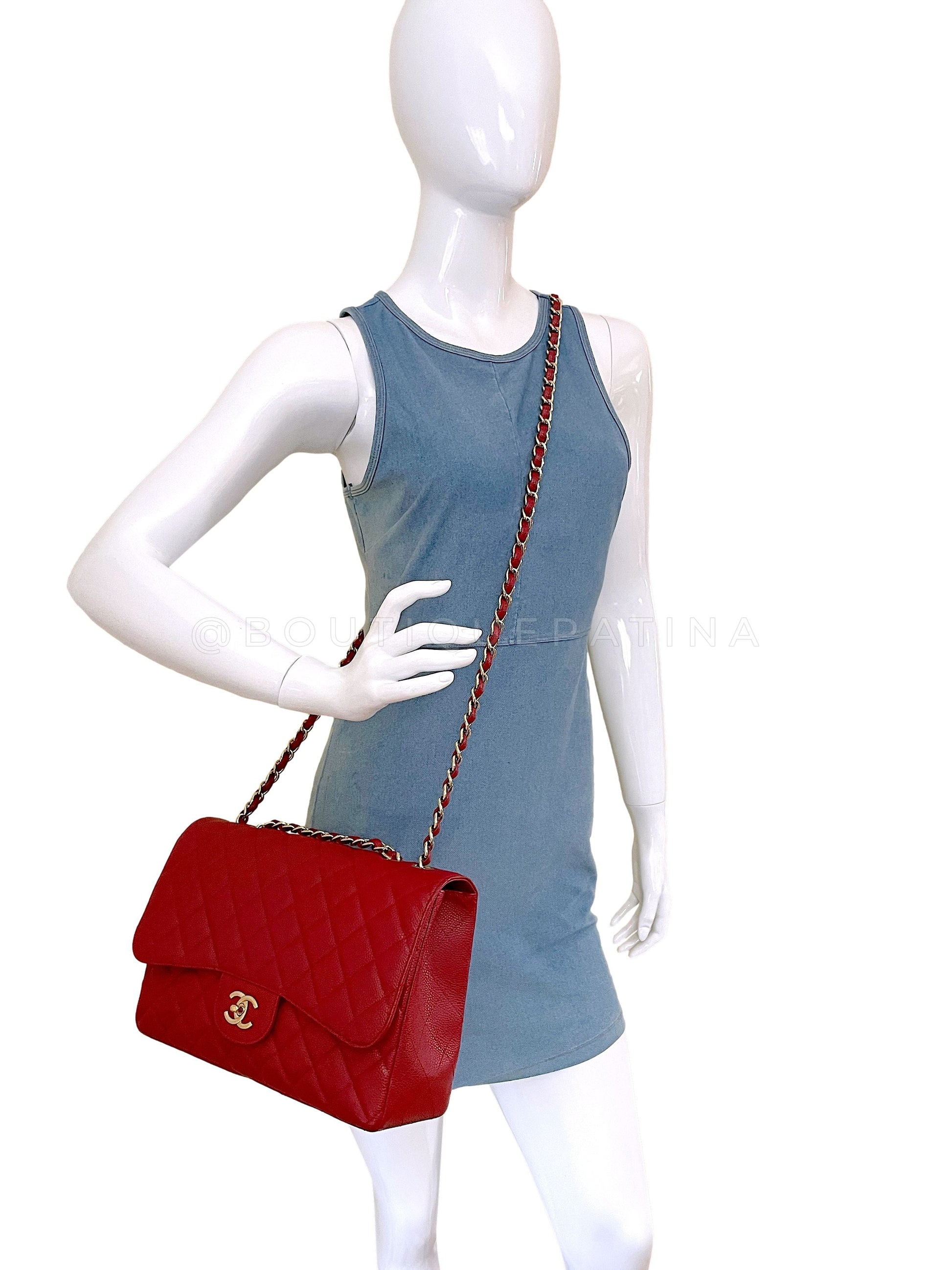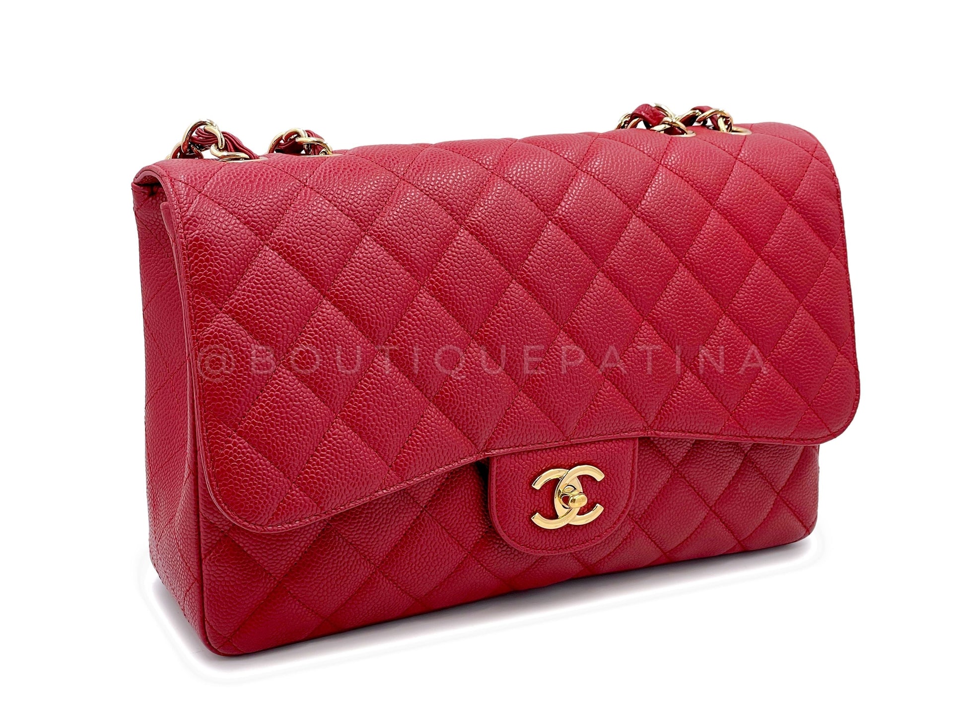 Chanel 2009 Red Caviar Jumbo Classic Flap Bag GHW Single