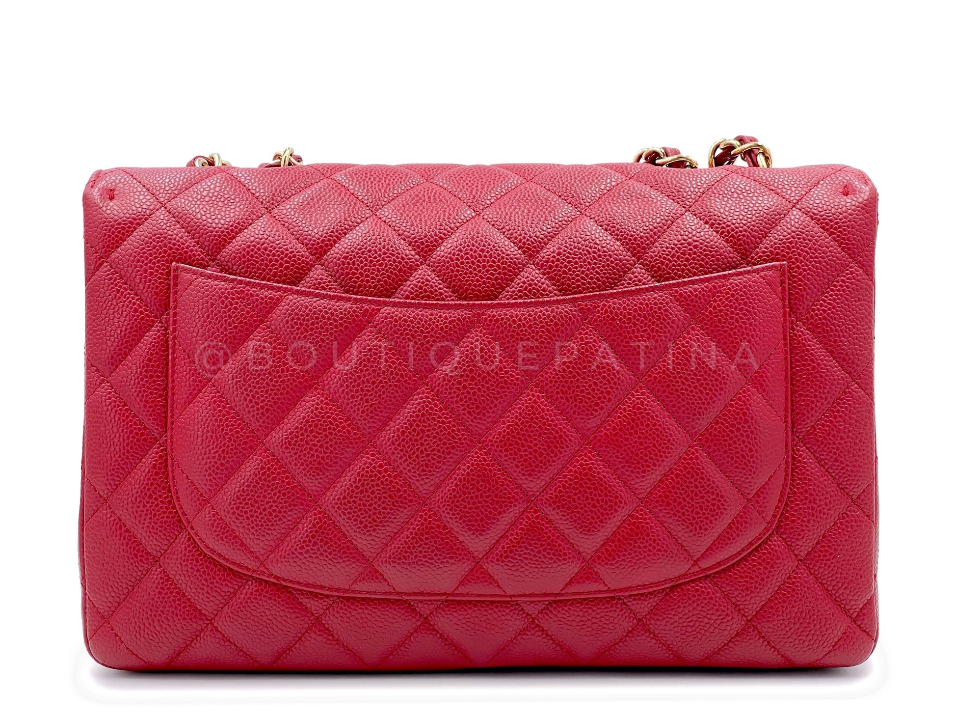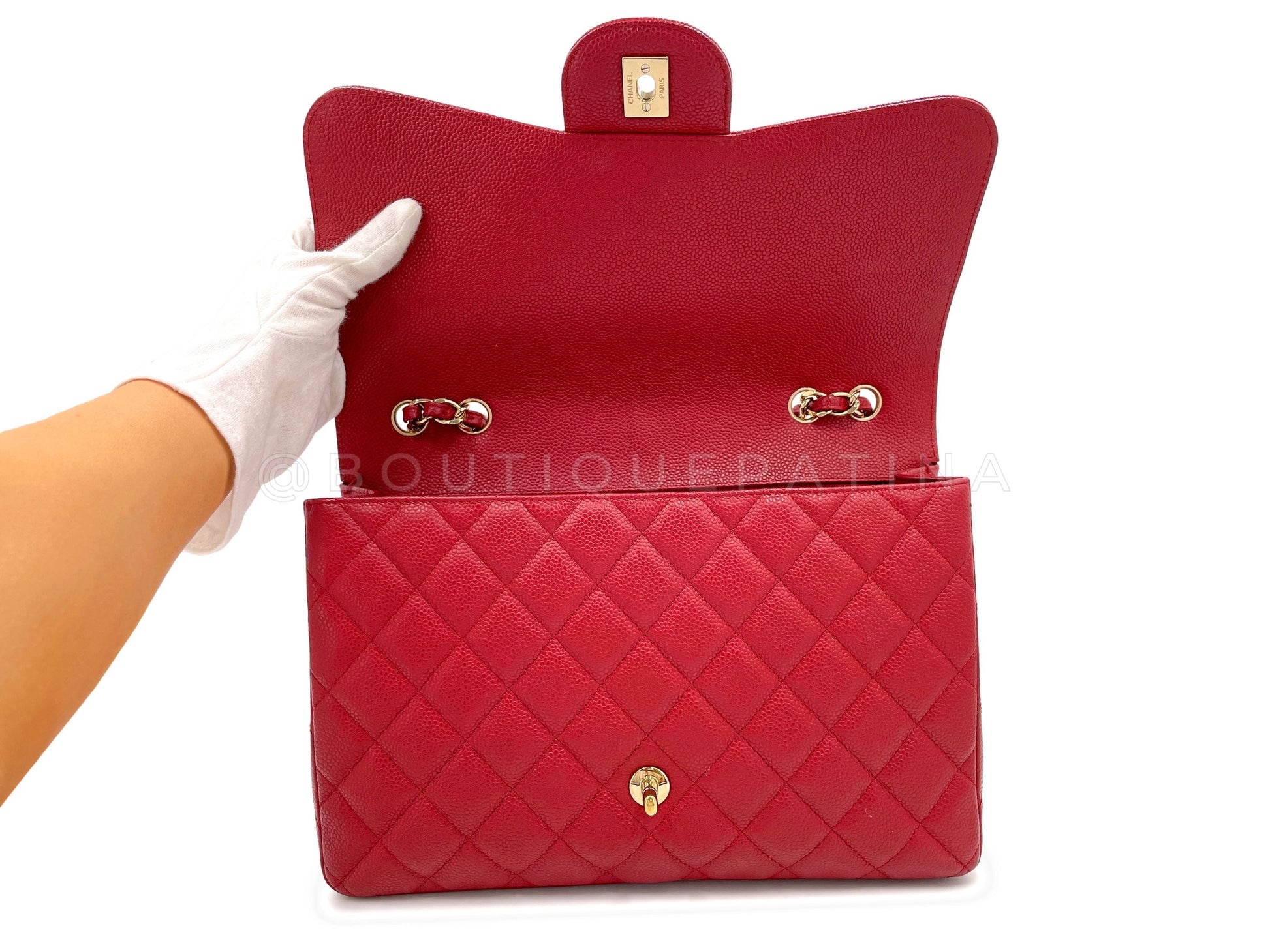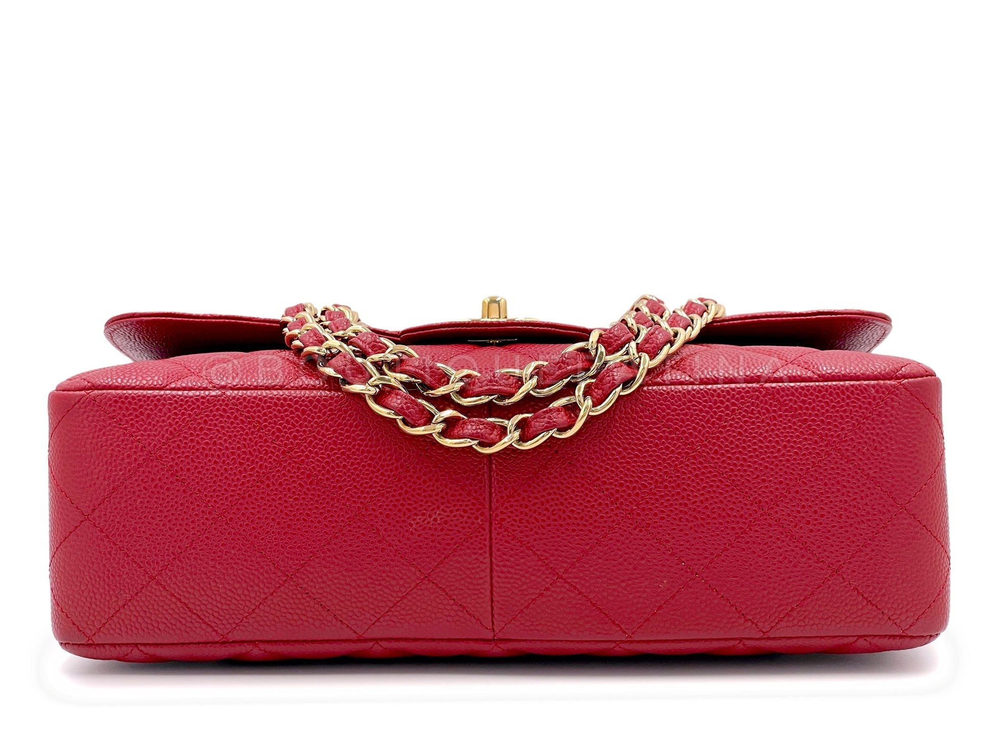 Chanel 2009 Red Caviar Jumbo Classic Flap Bag GHW Single