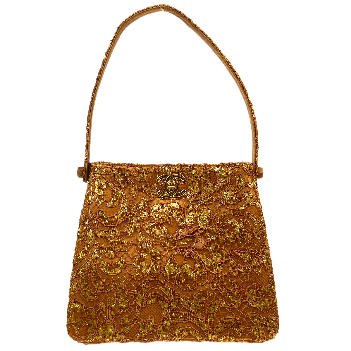 Chanel * 1997-1999 Double Sided Turnlock Handbag Satin Lace