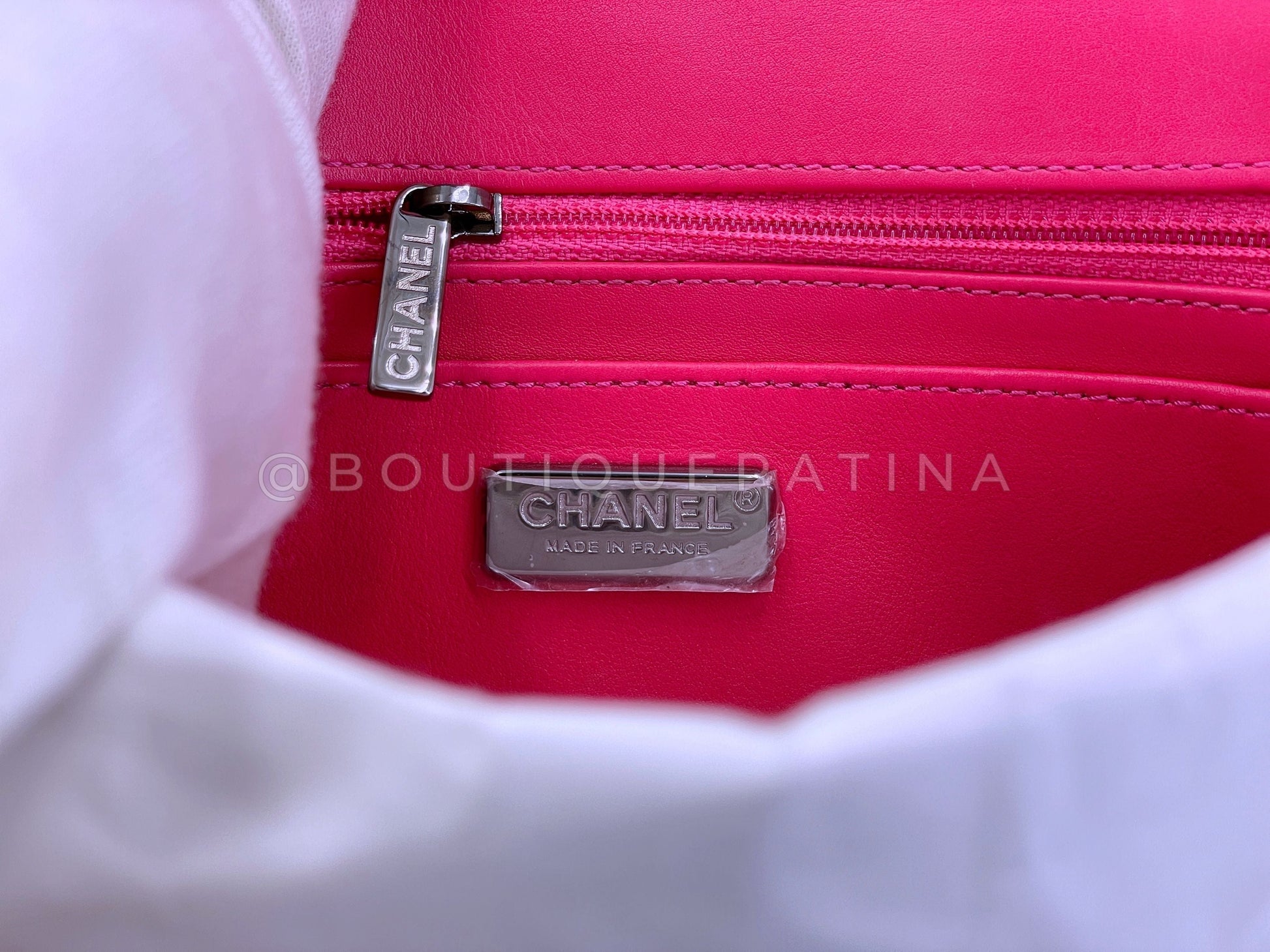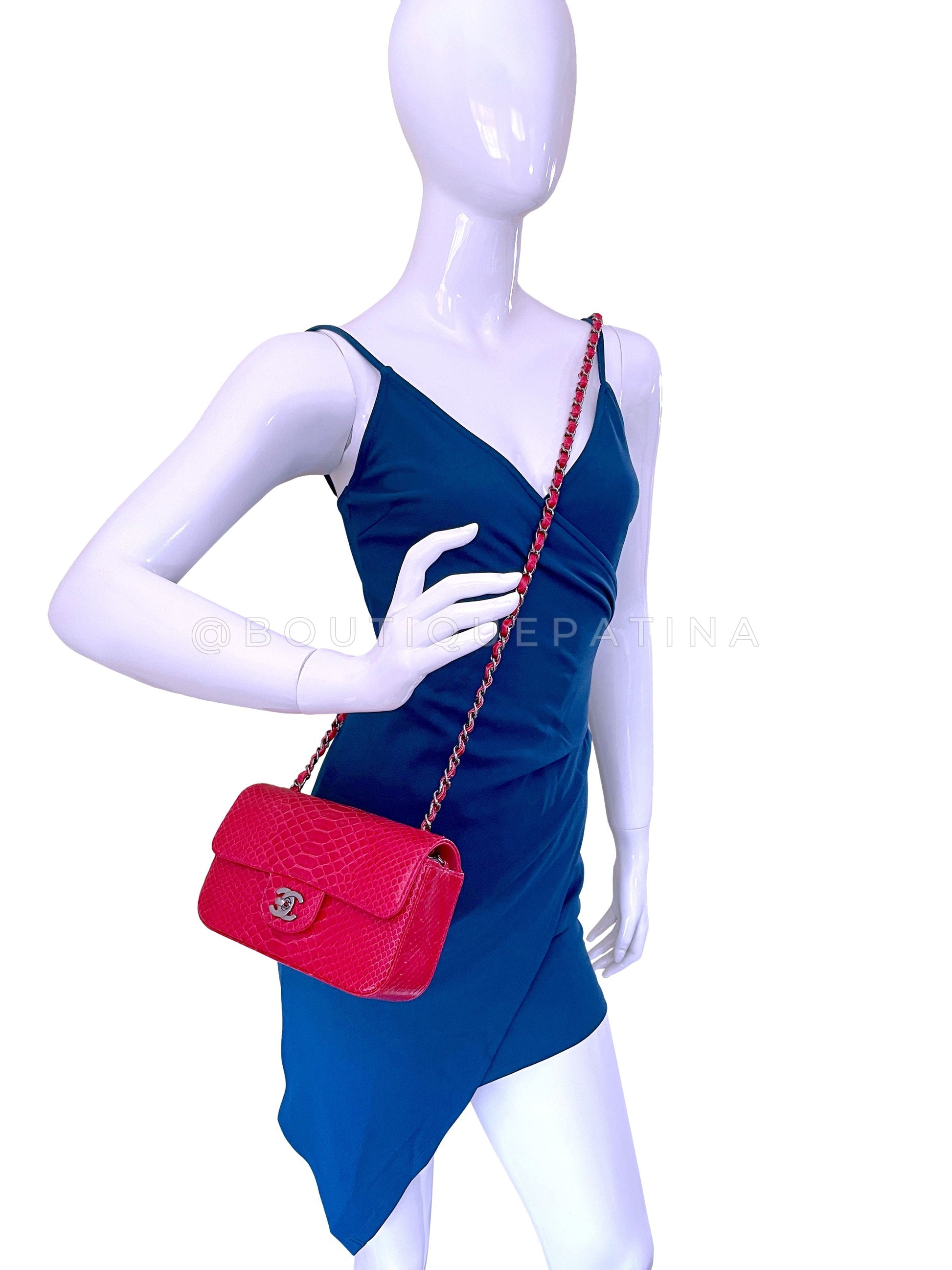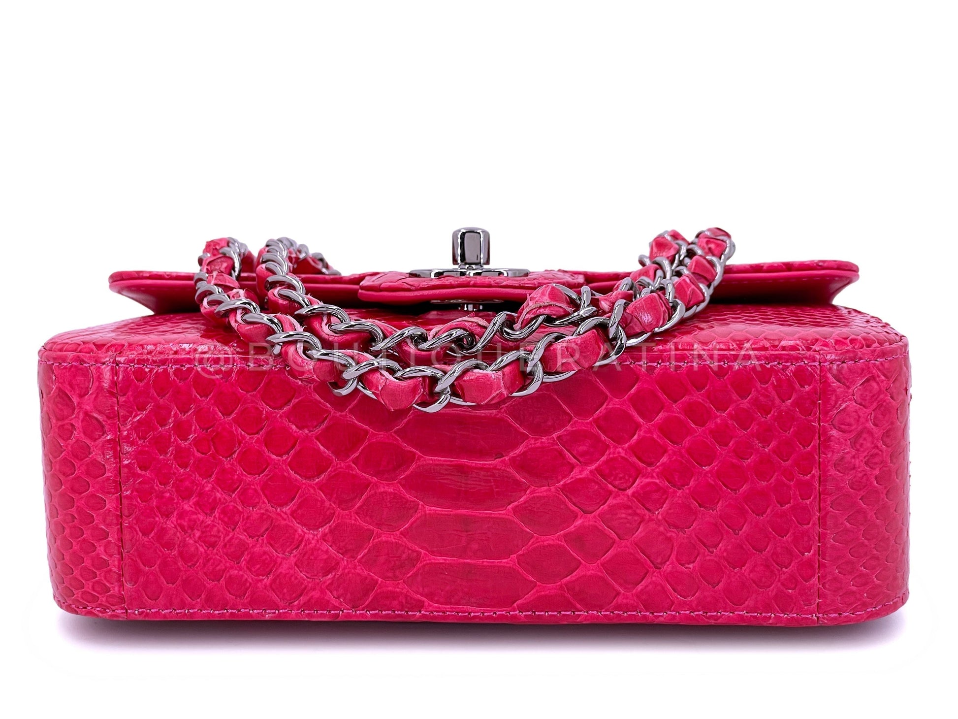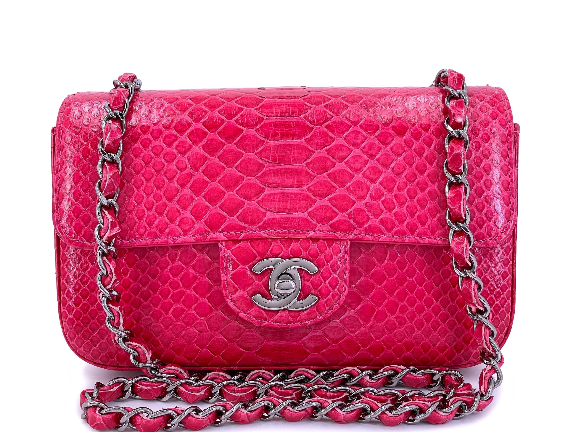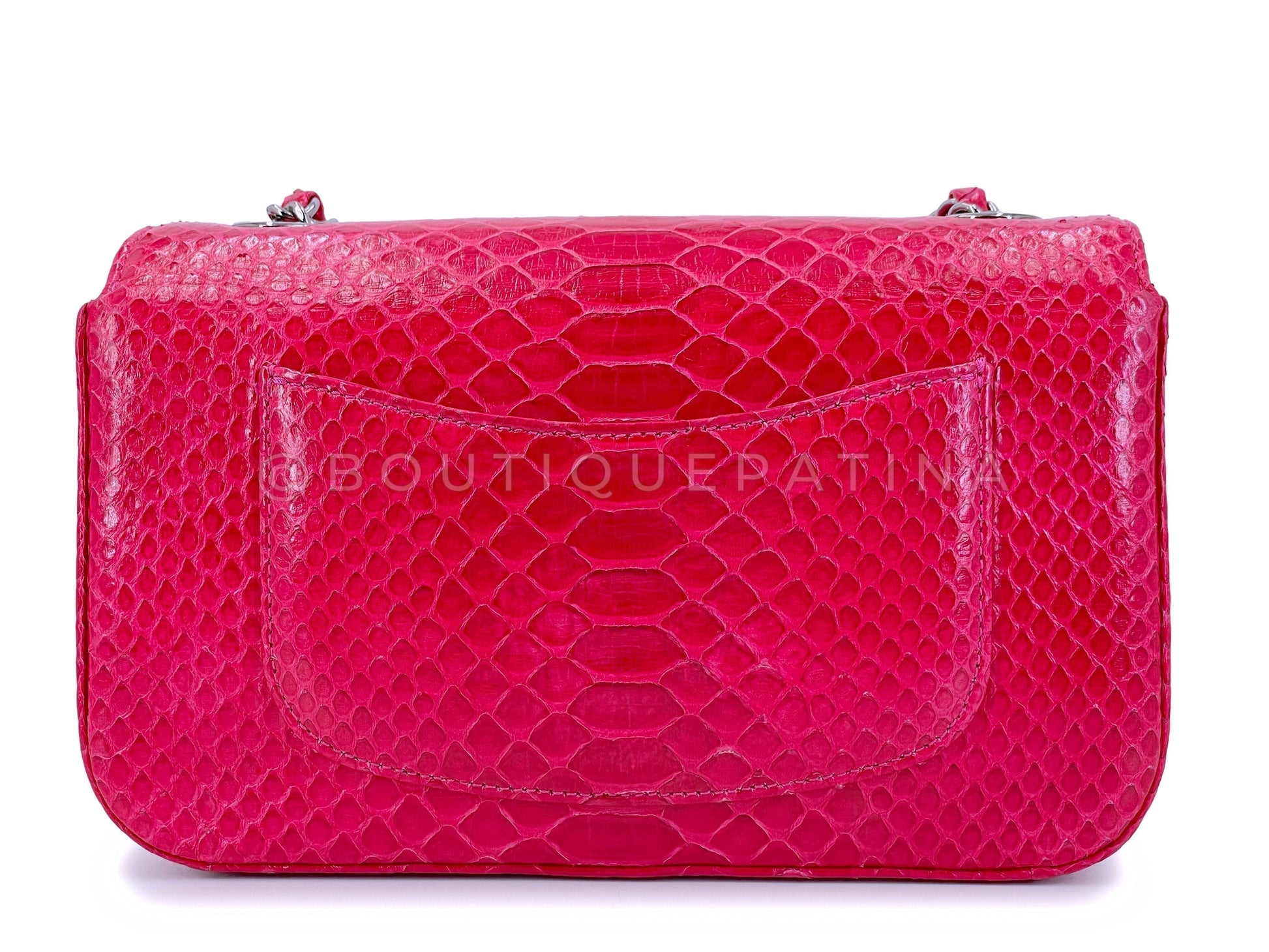 In fuchsia pink python and shiny ruthenium hardware. Established 19 years ago, Boutique Patina has specialized in sourcing and curating the best condition vintage Chanel leather treasures by searching closets around the world.