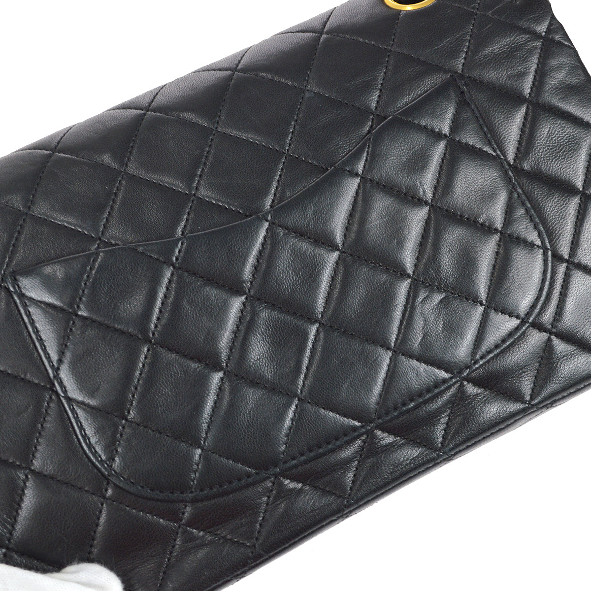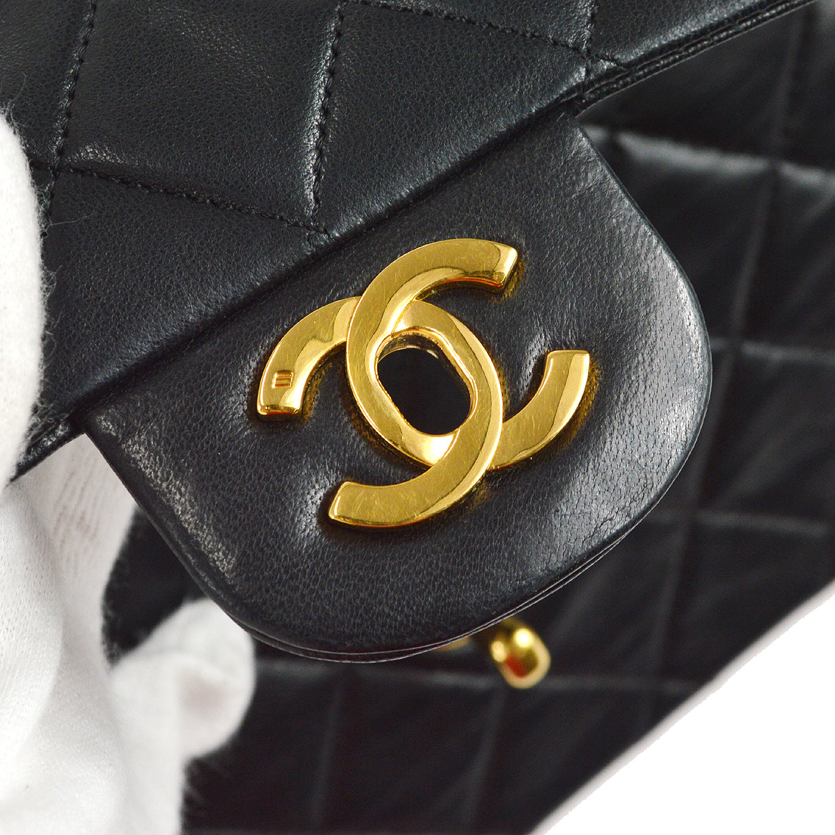 Chanel 1989-1991 Classic Double Flap Medium Shoulder Bag Black Lambskin