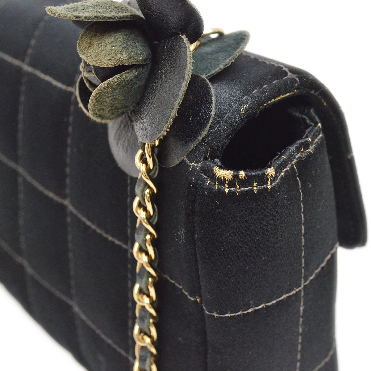 CHANEL 2003-2004 Camellia Choco Bar Chain Shoulder Bag Black Satin