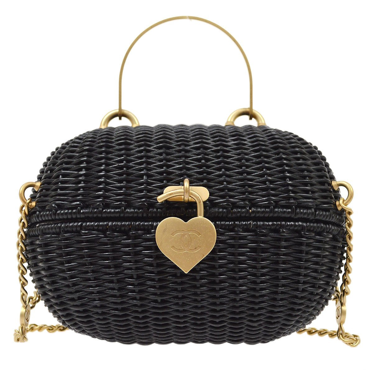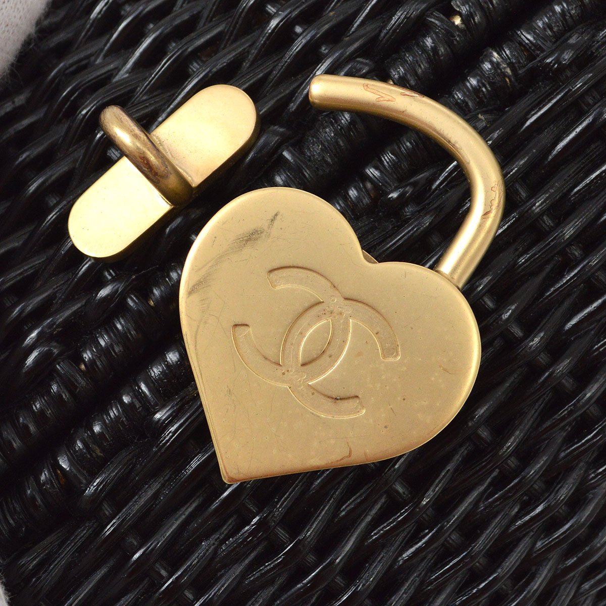| CHANEL Heart Charm Lock Basket 2way Chain Hand Shoulder Bag Black Rattan | |