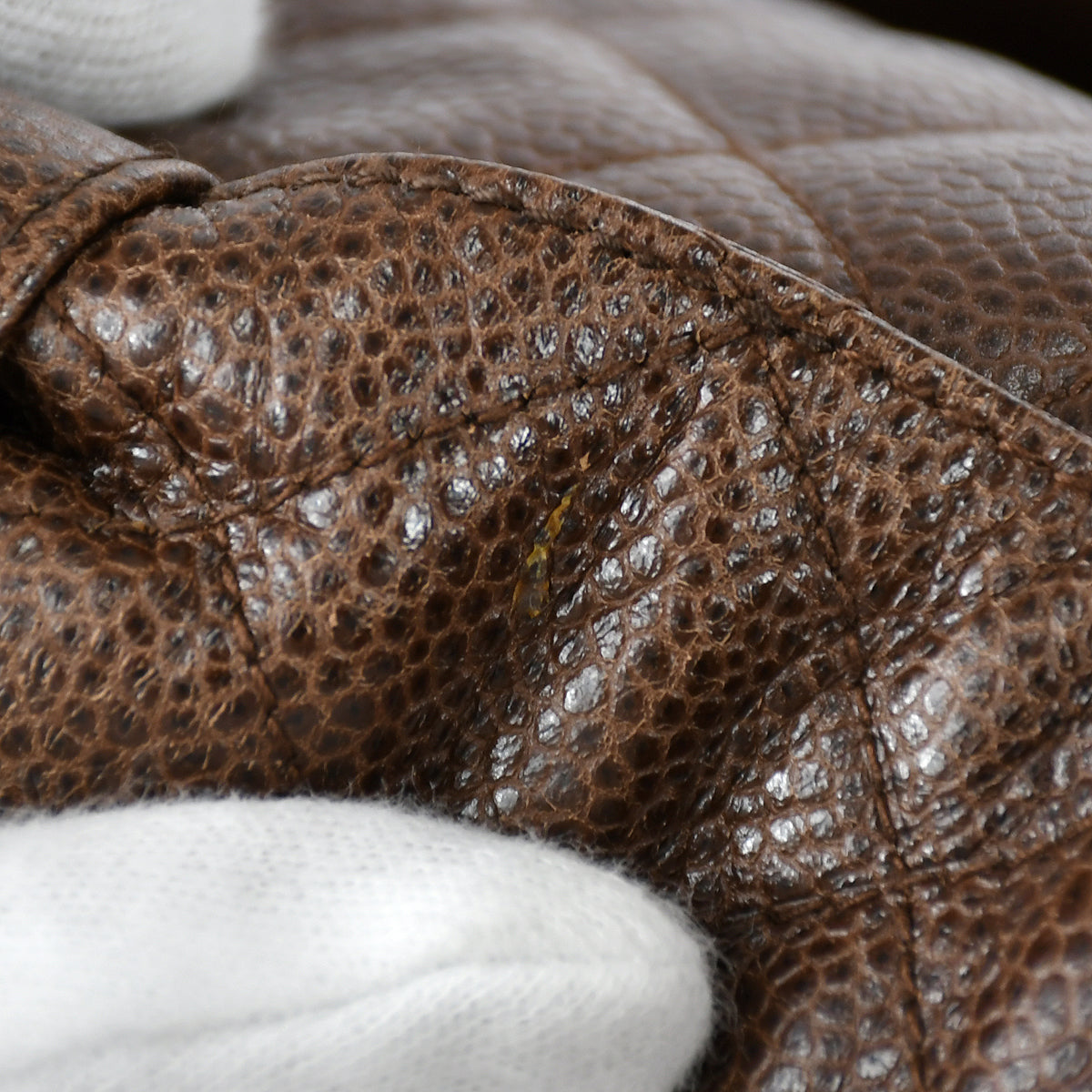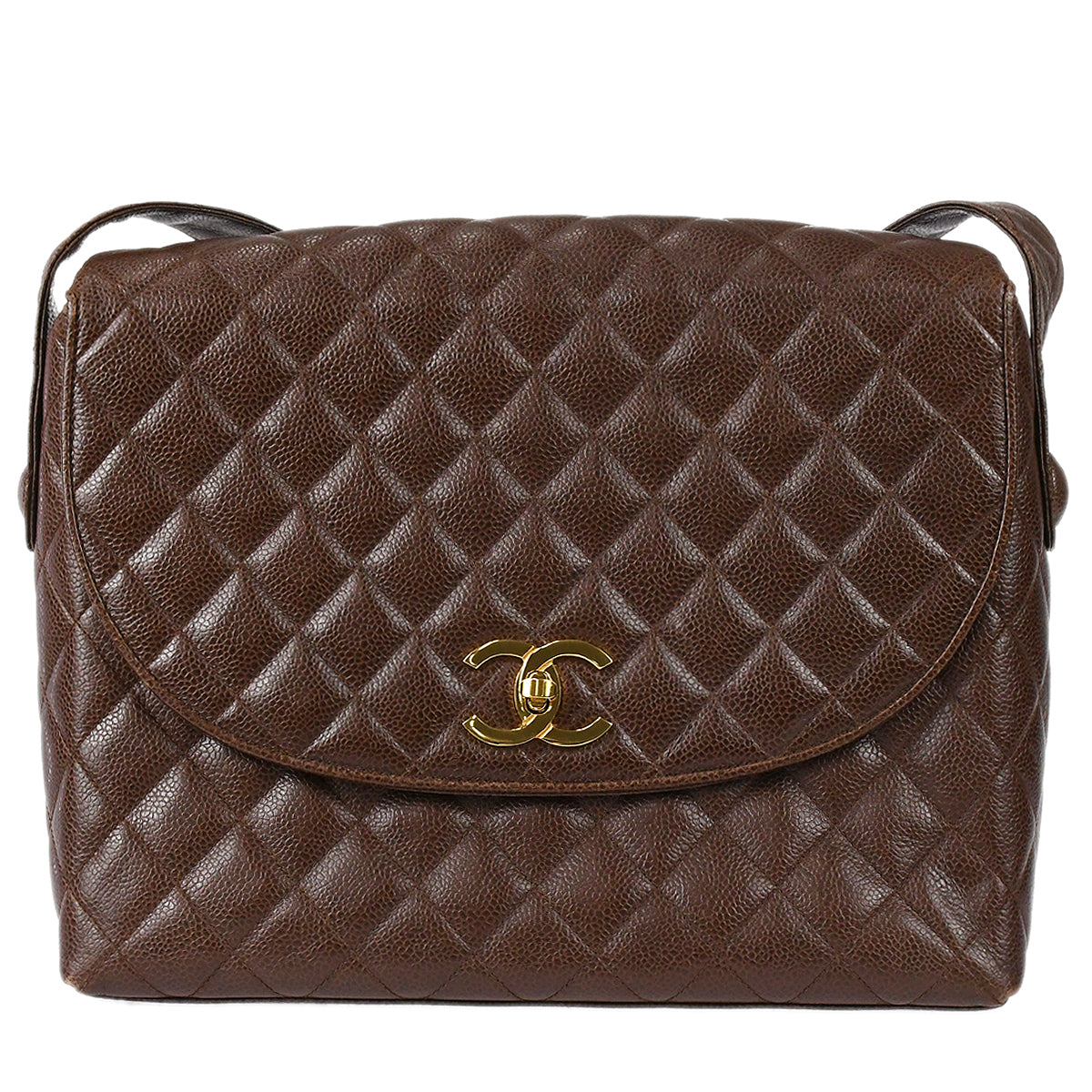 Chanel 1991-1994 Round Flap Shoulder Bag Jumbo Brown Caviar