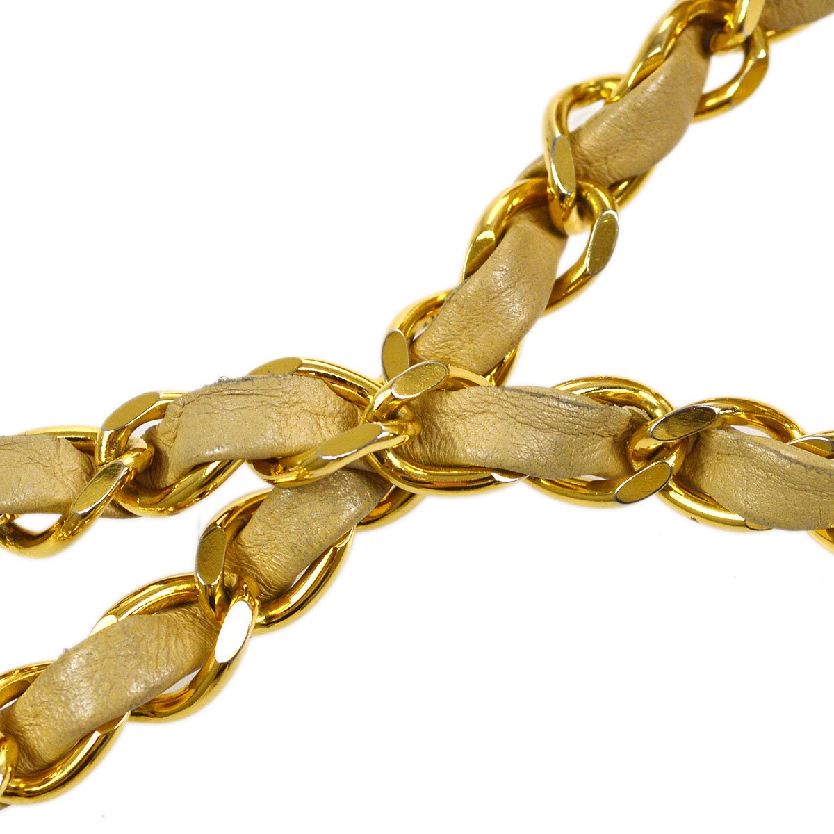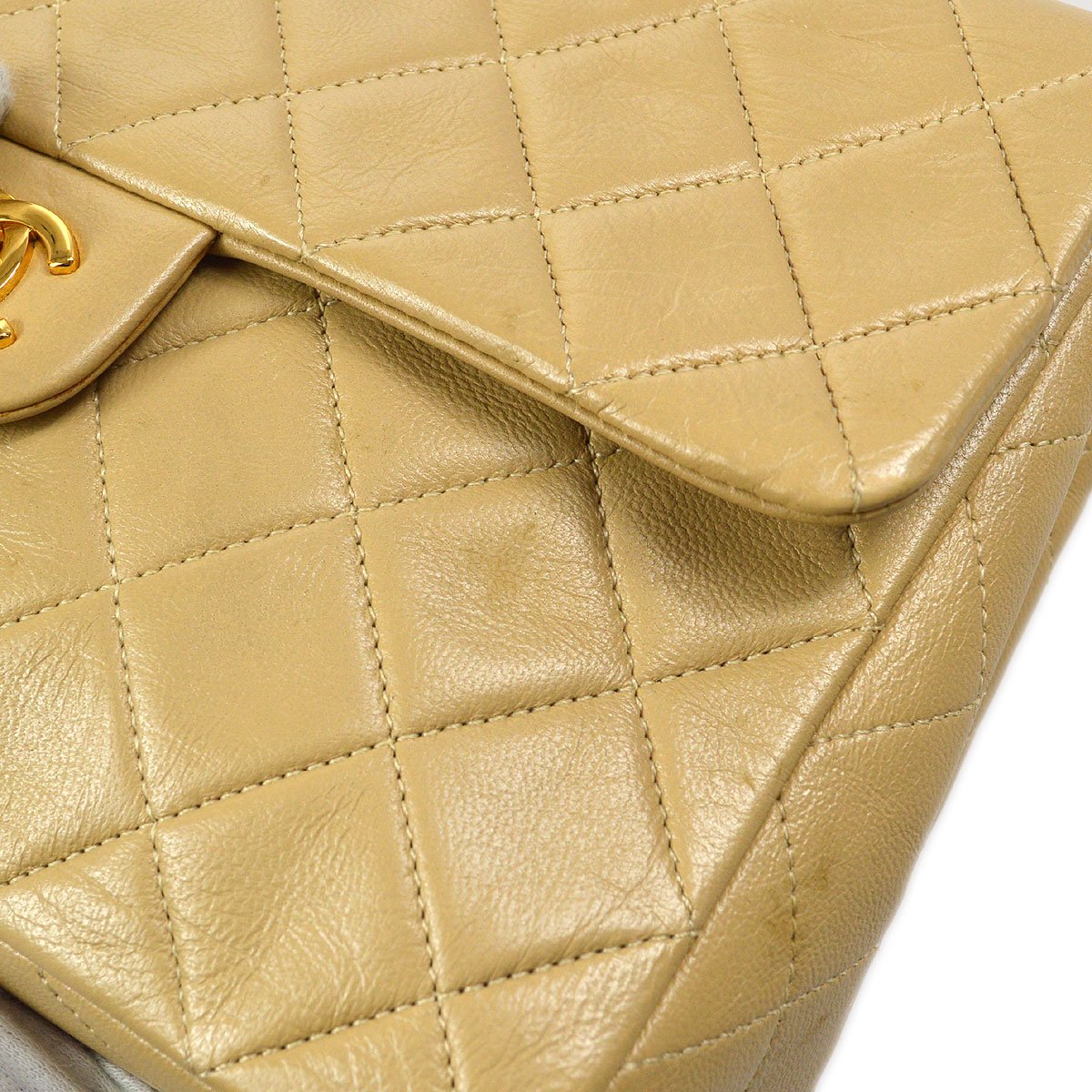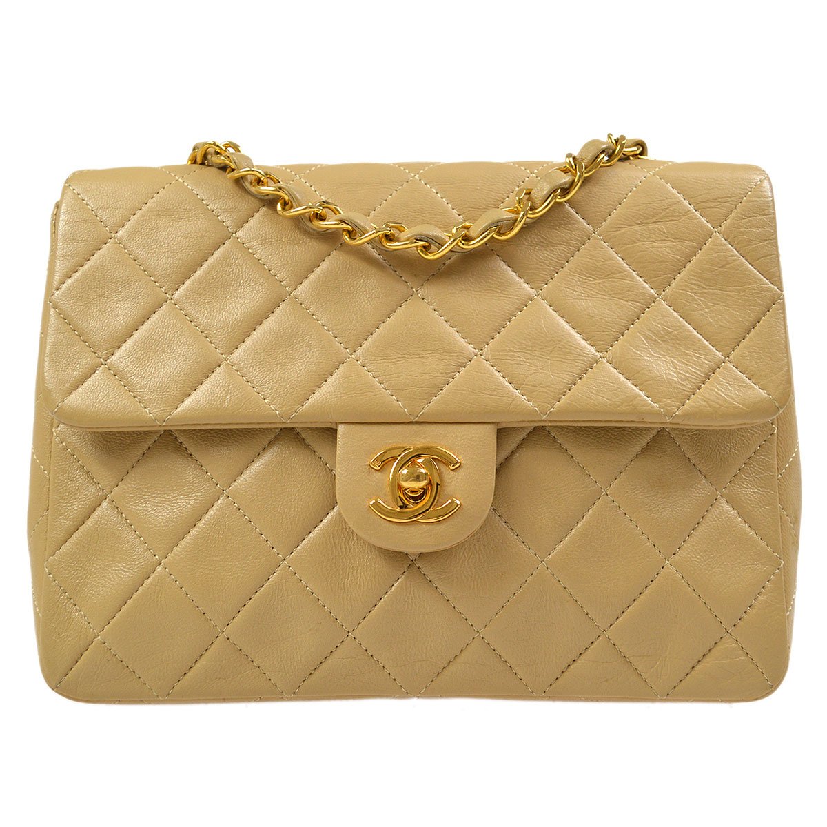 CHANEL 1989-1991 Single Chain Shoulder Bag Beige Lambskin