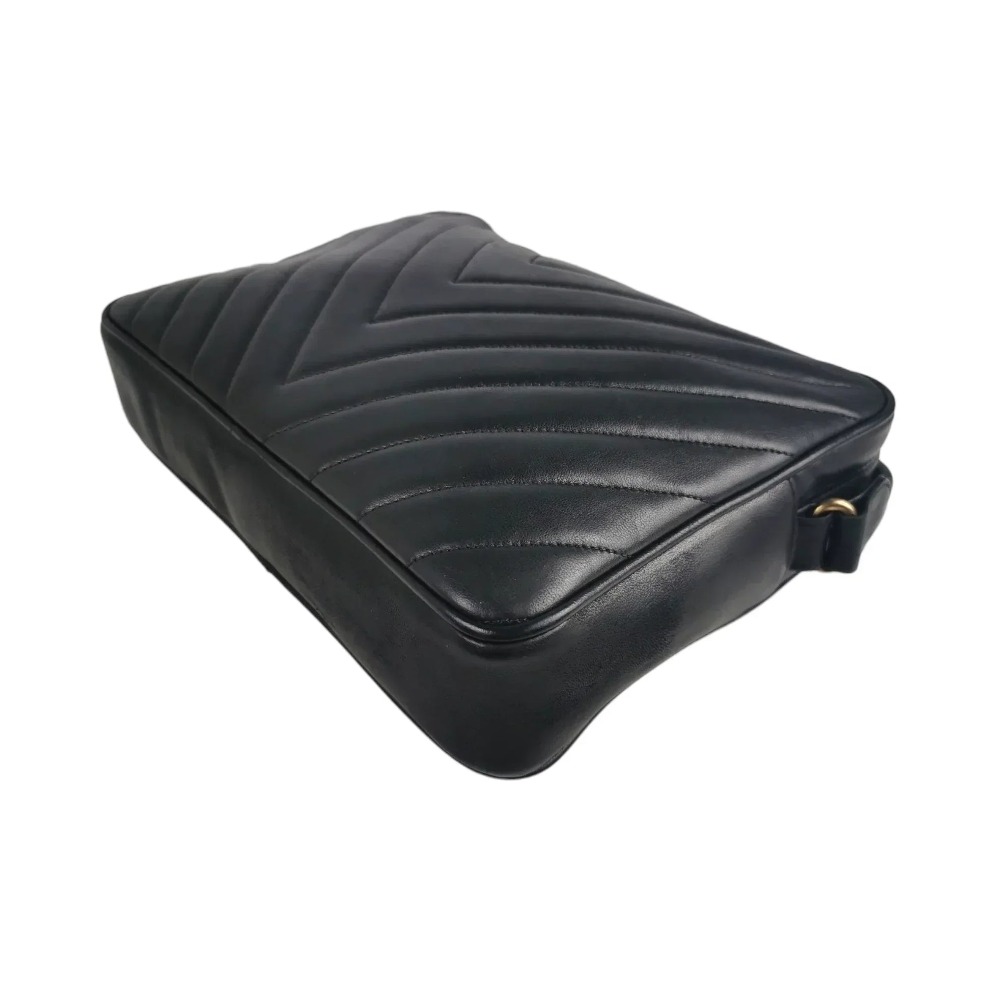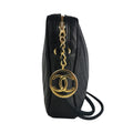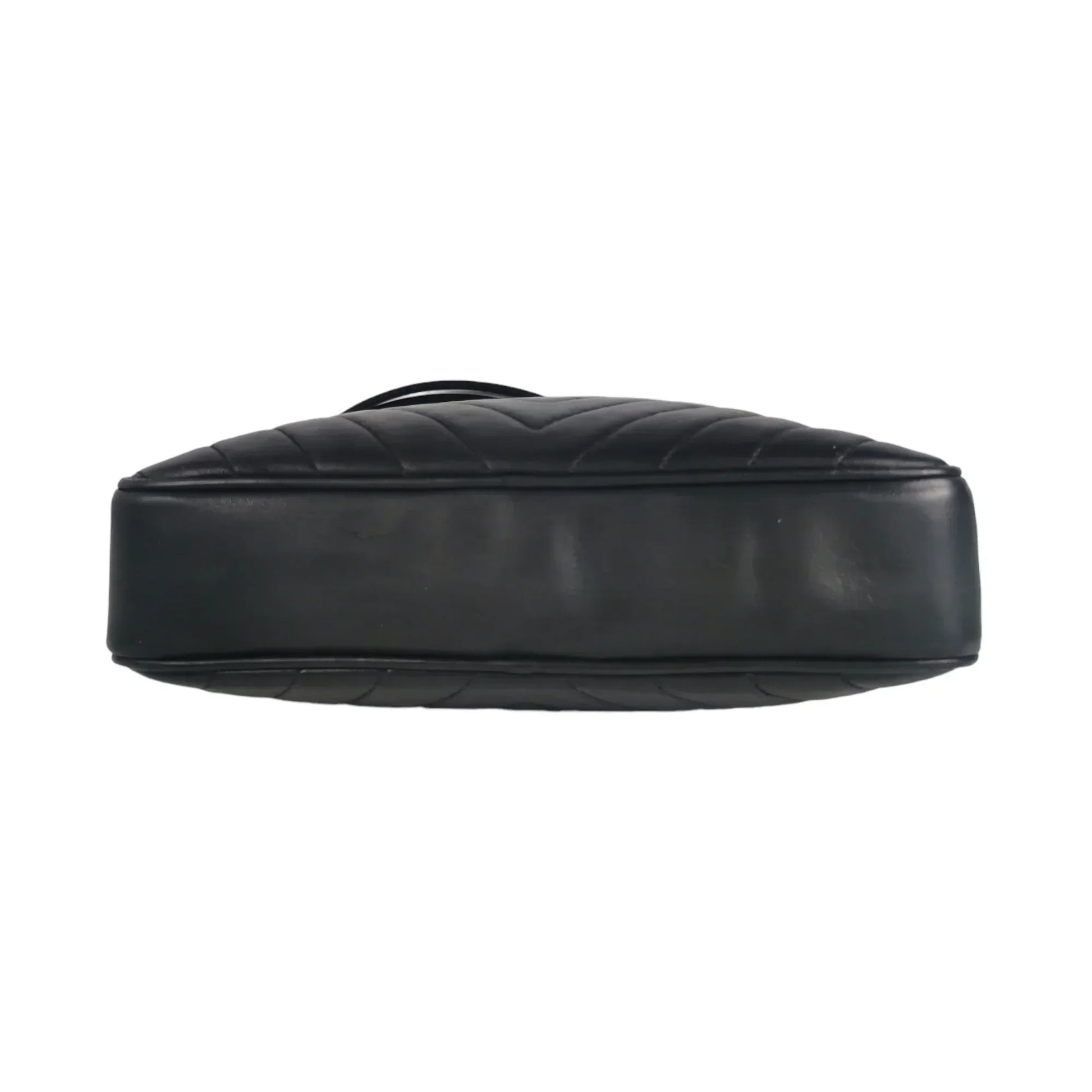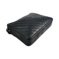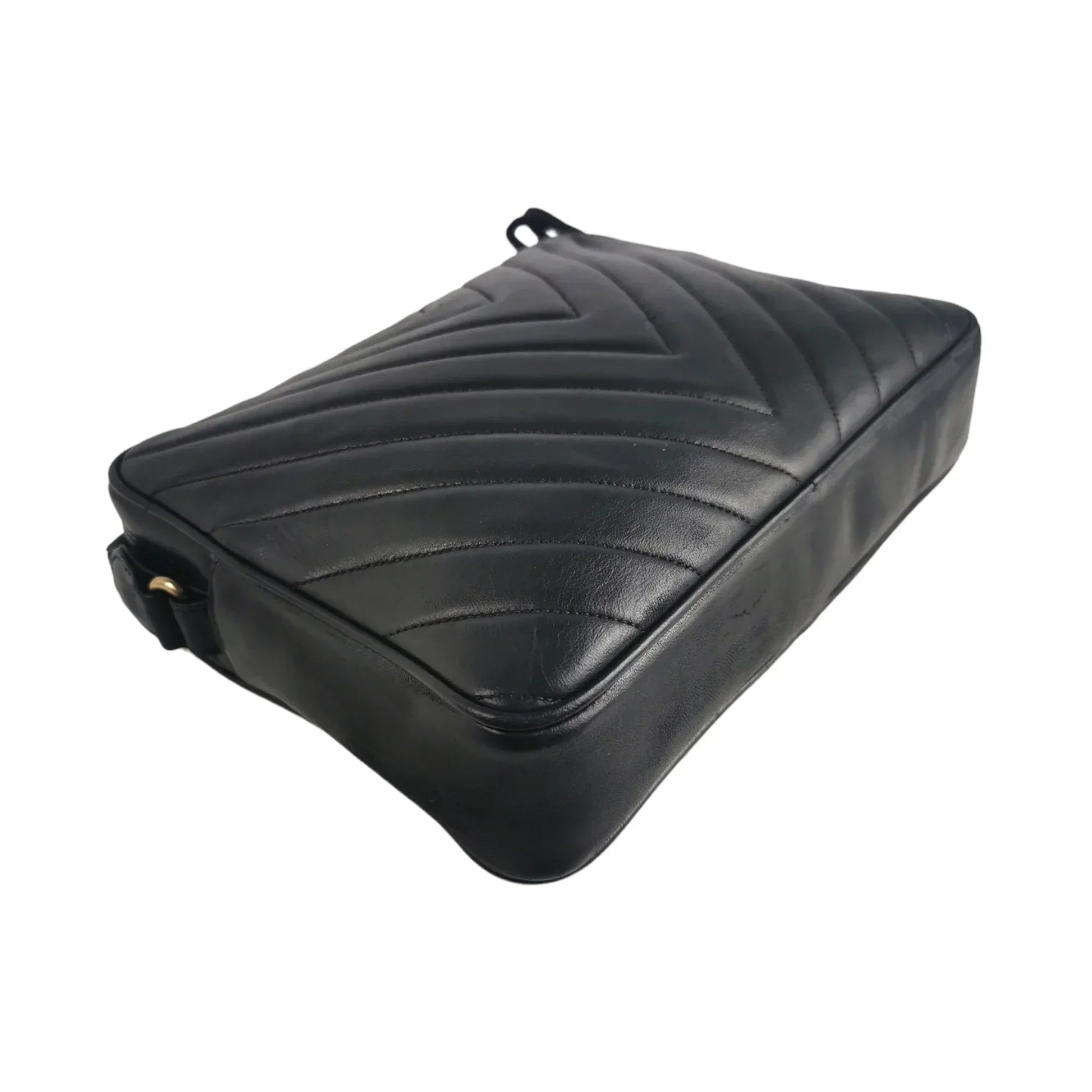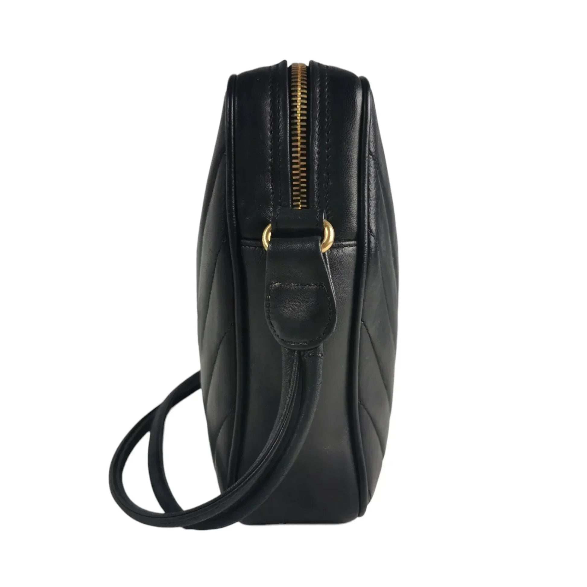 A rare Chanel shoulder bag in a black lamb leather, which has the V-shaped Chevron quilting and golden hardware. The interior is lined with black leather and has two zip compartments.