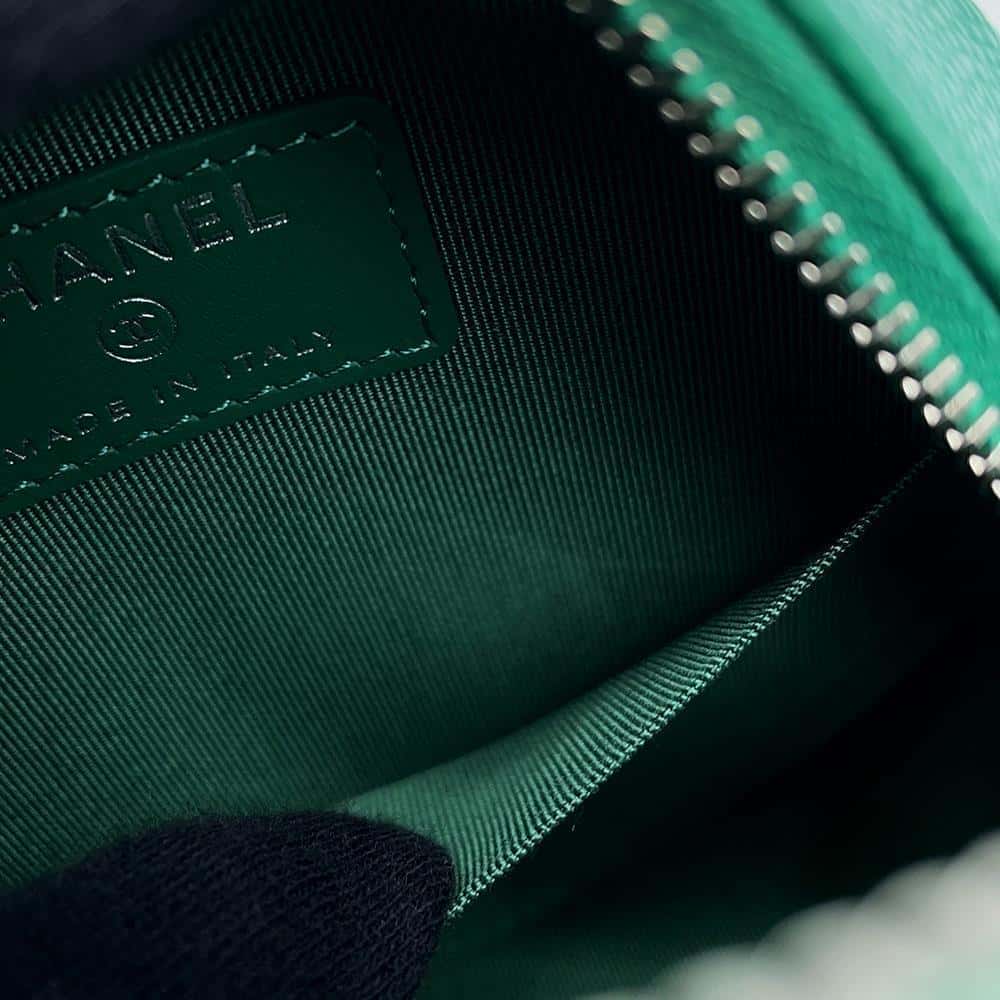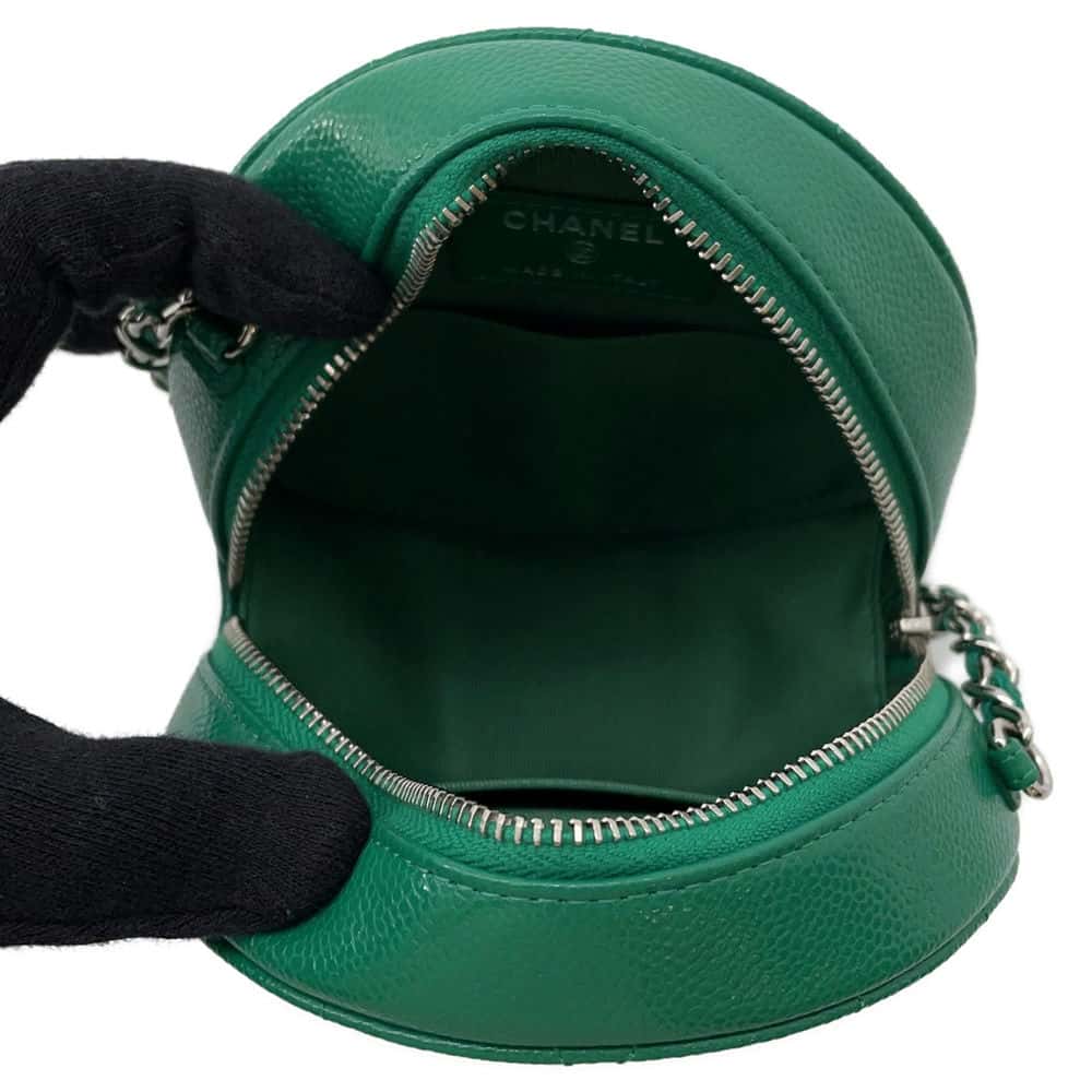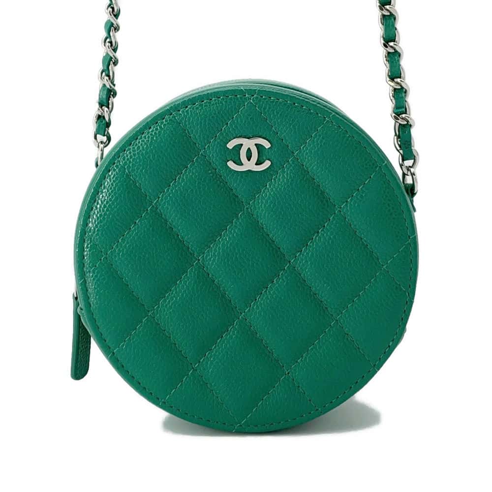 CHANEL Round Chain Shoulder Bag Green A70657 Caviar Leather