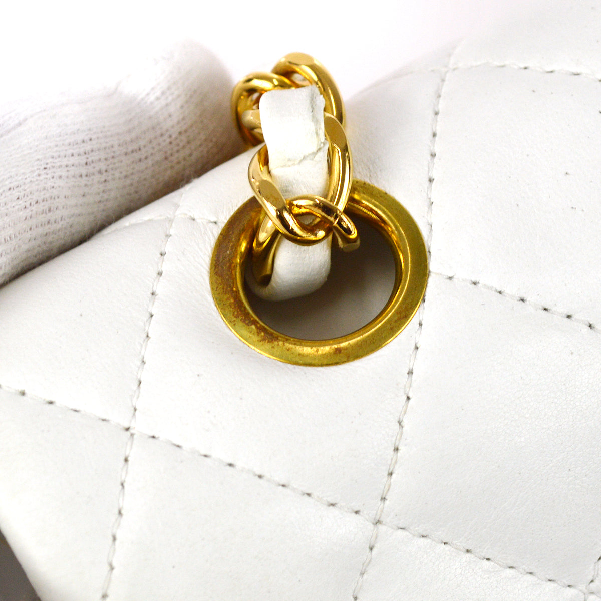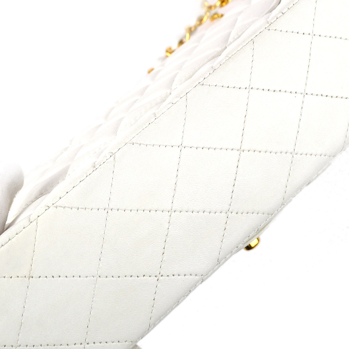 Chanel 1997-1999 Classic Double Flap Medium Shoulder Bag White Lambskin