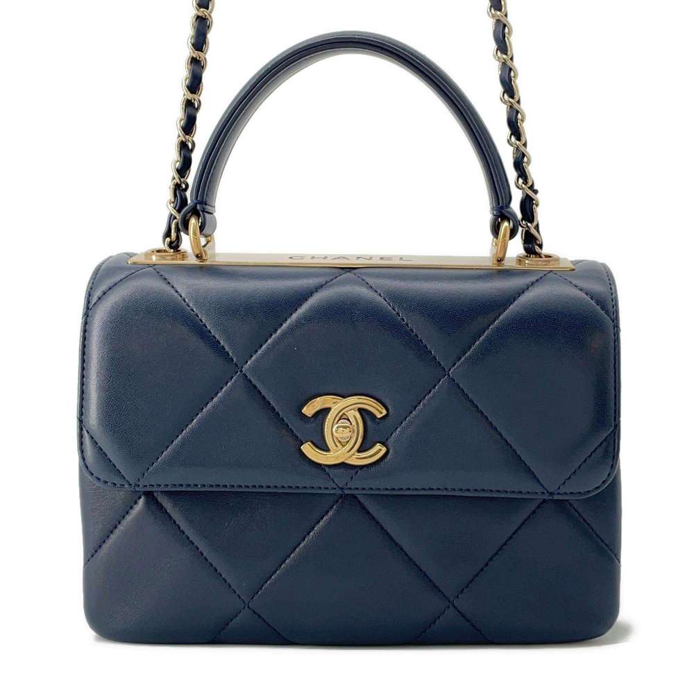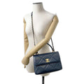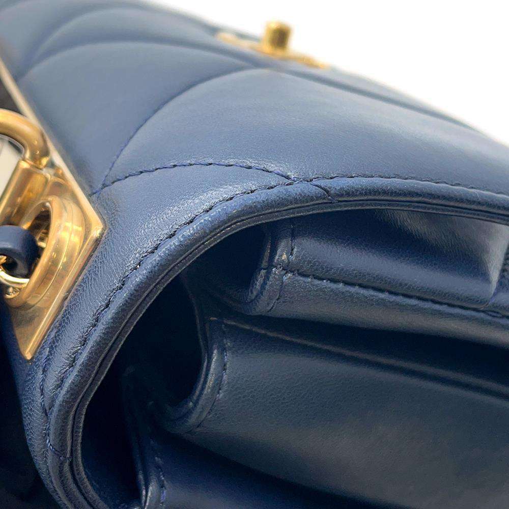 CHANEL Top handle Flap Bag Navy A92236 Lambskin