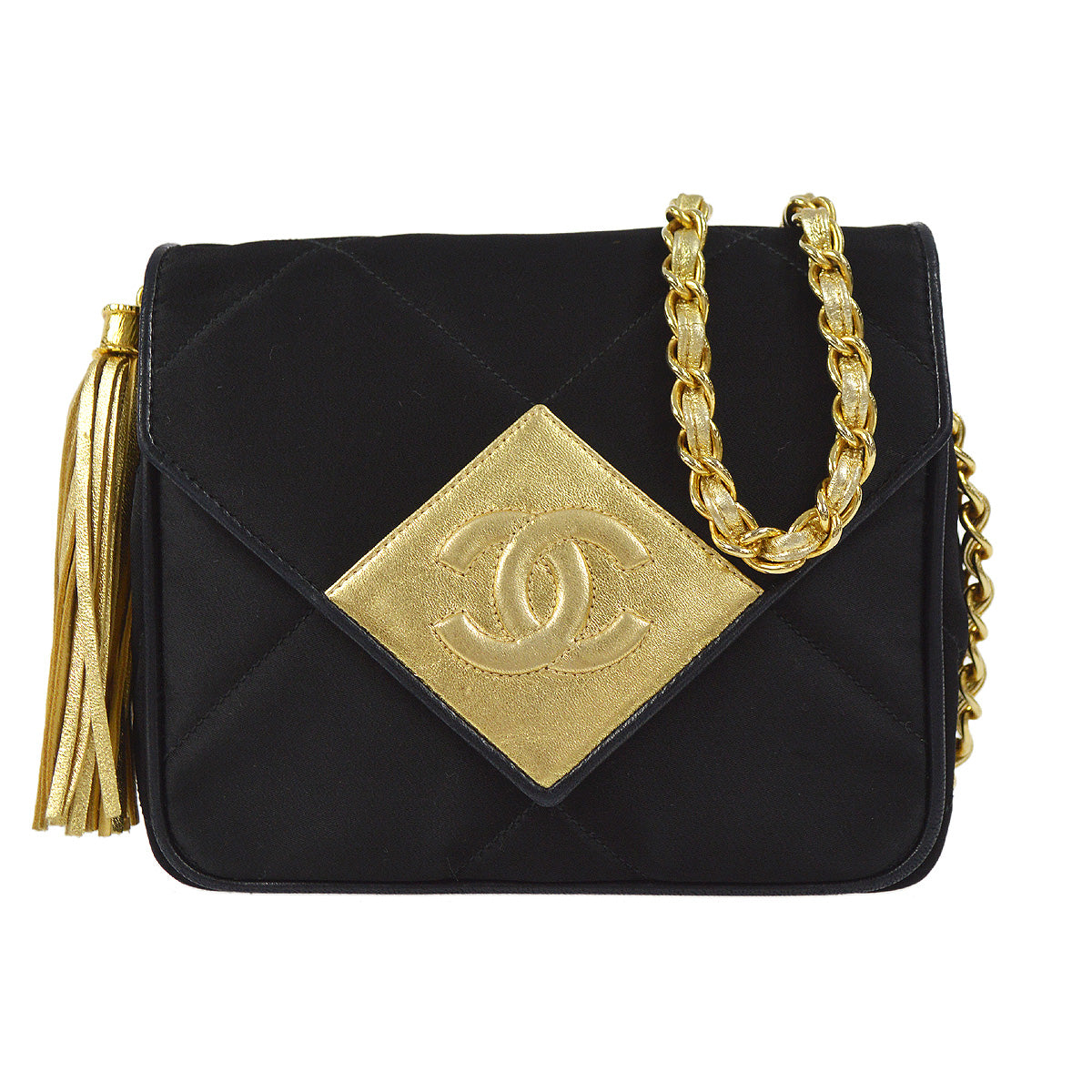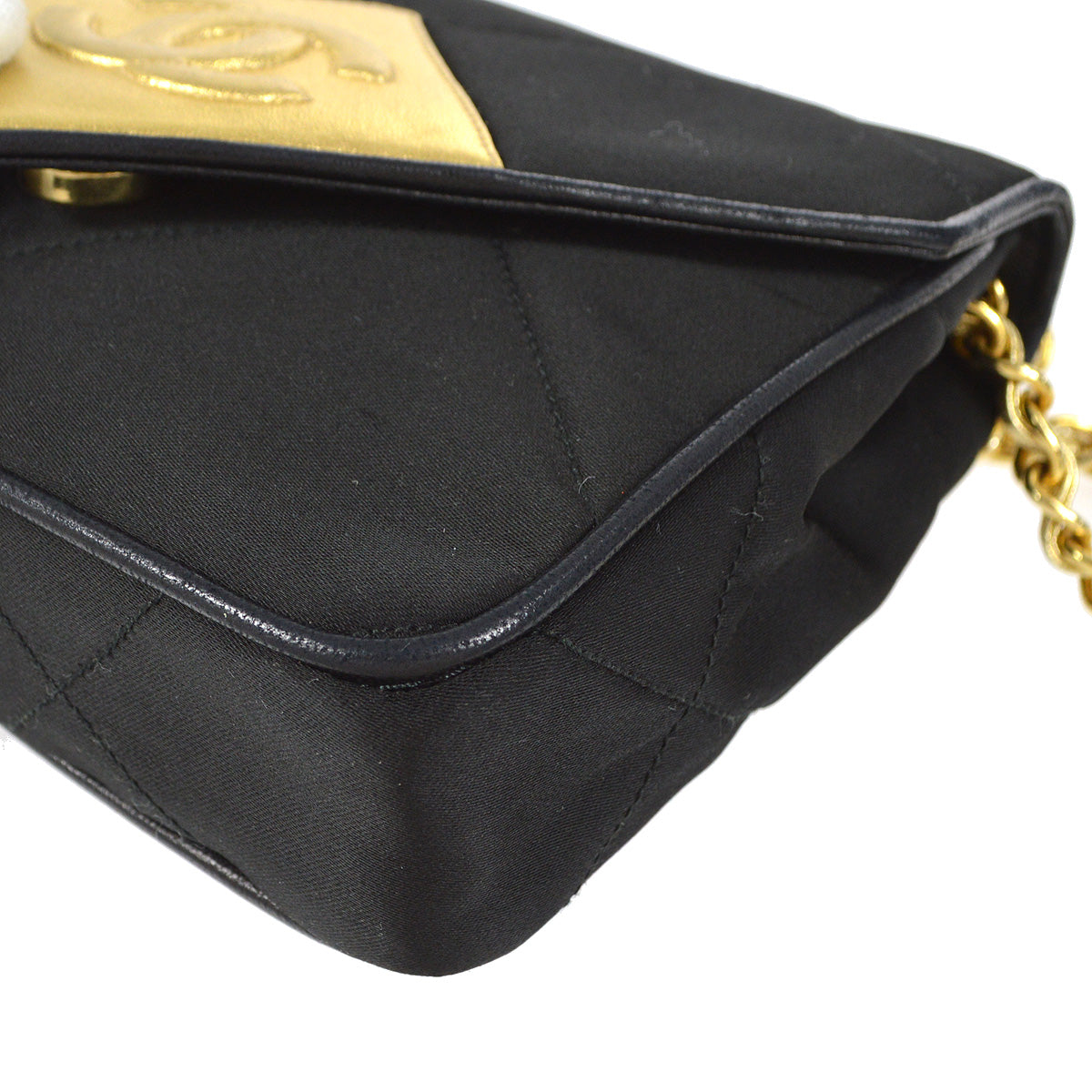 Chanel 1989-1991 Flap Shoulder Bag Mini Black Satin