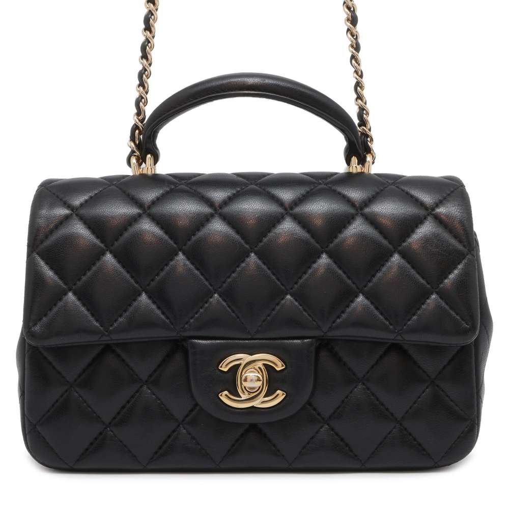 CHANEL Top handle 2wayBag Black AS2431 Lambskin Size 20