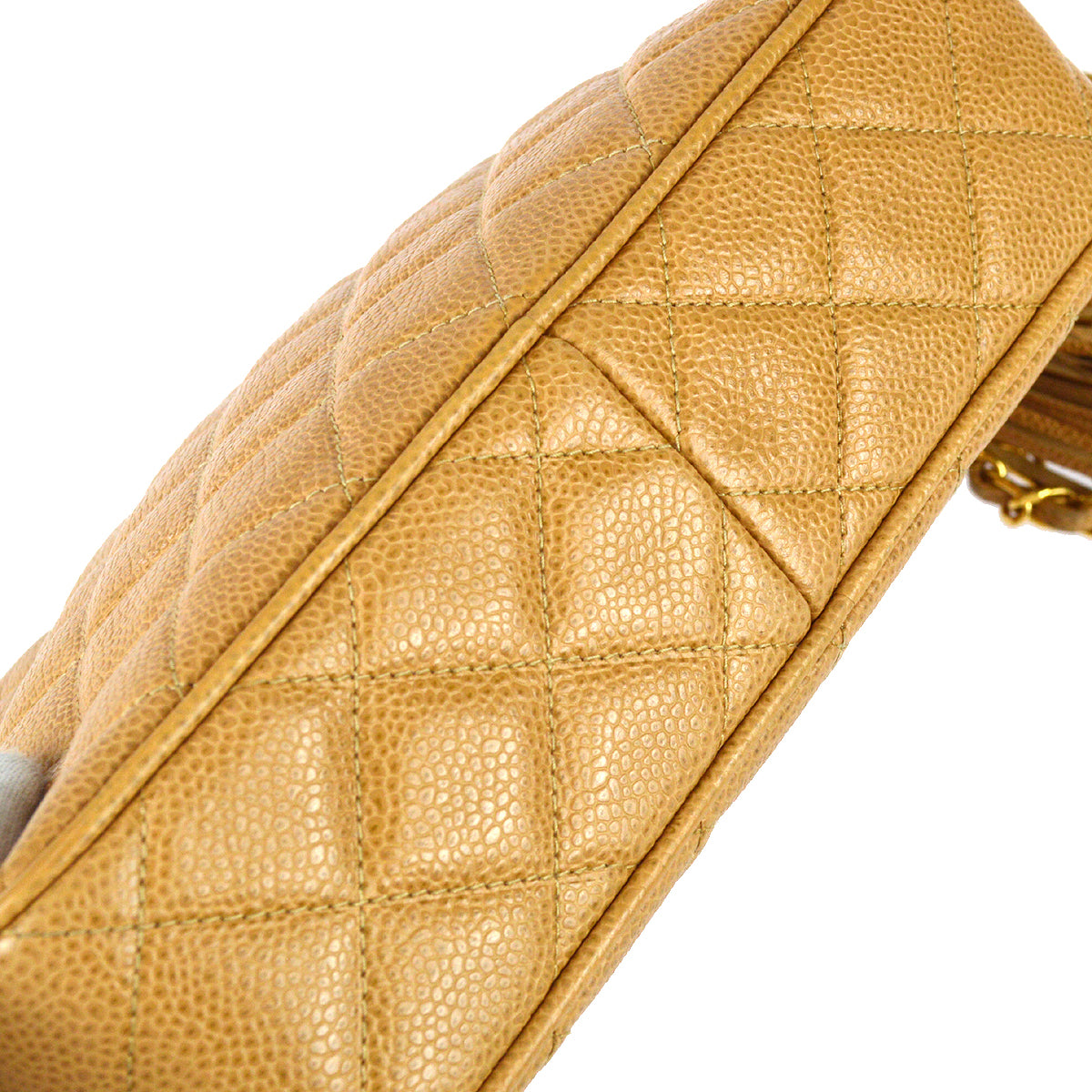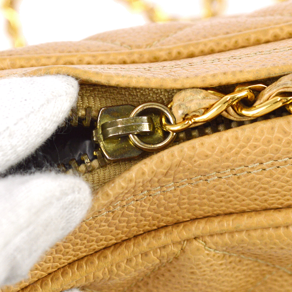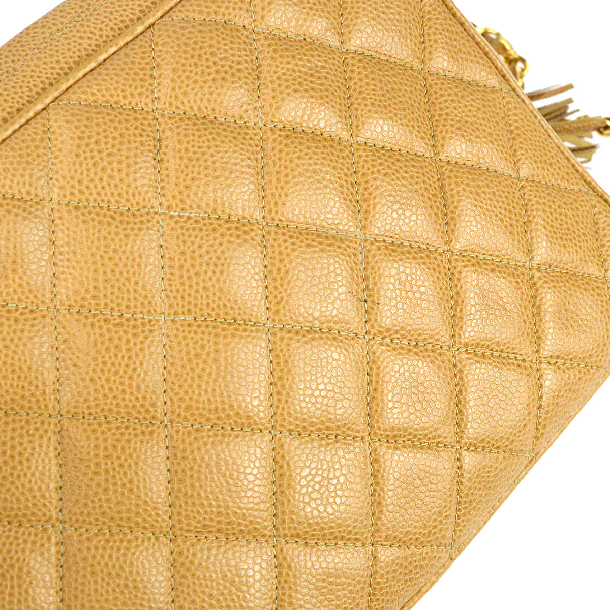 Chanel Chain Fringe Shoulder Bag Beige Caviar