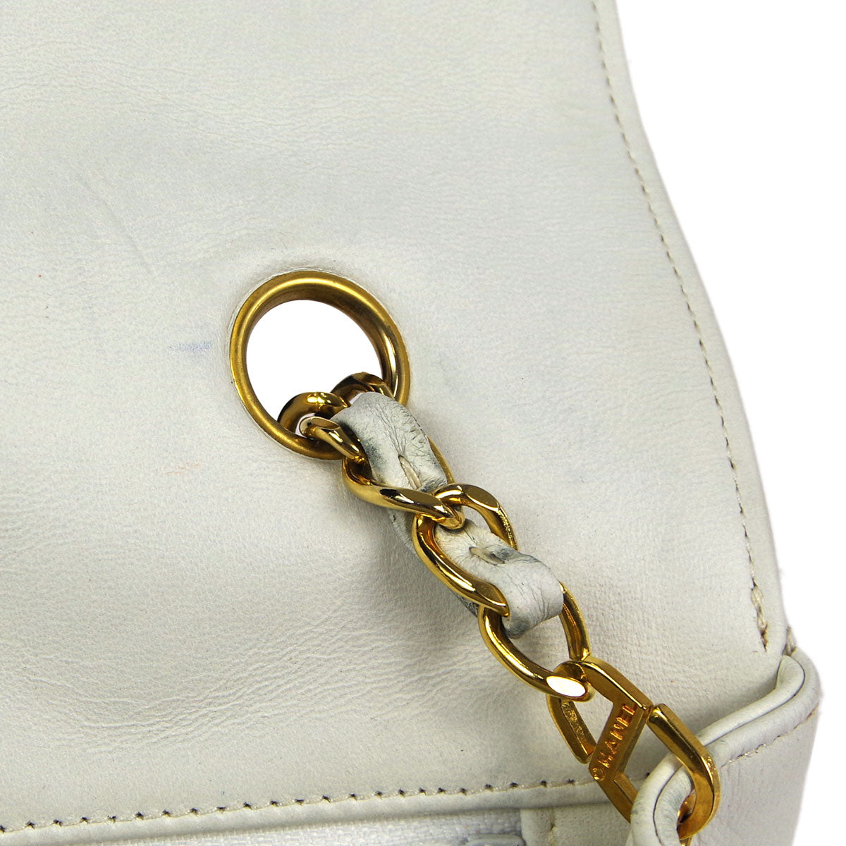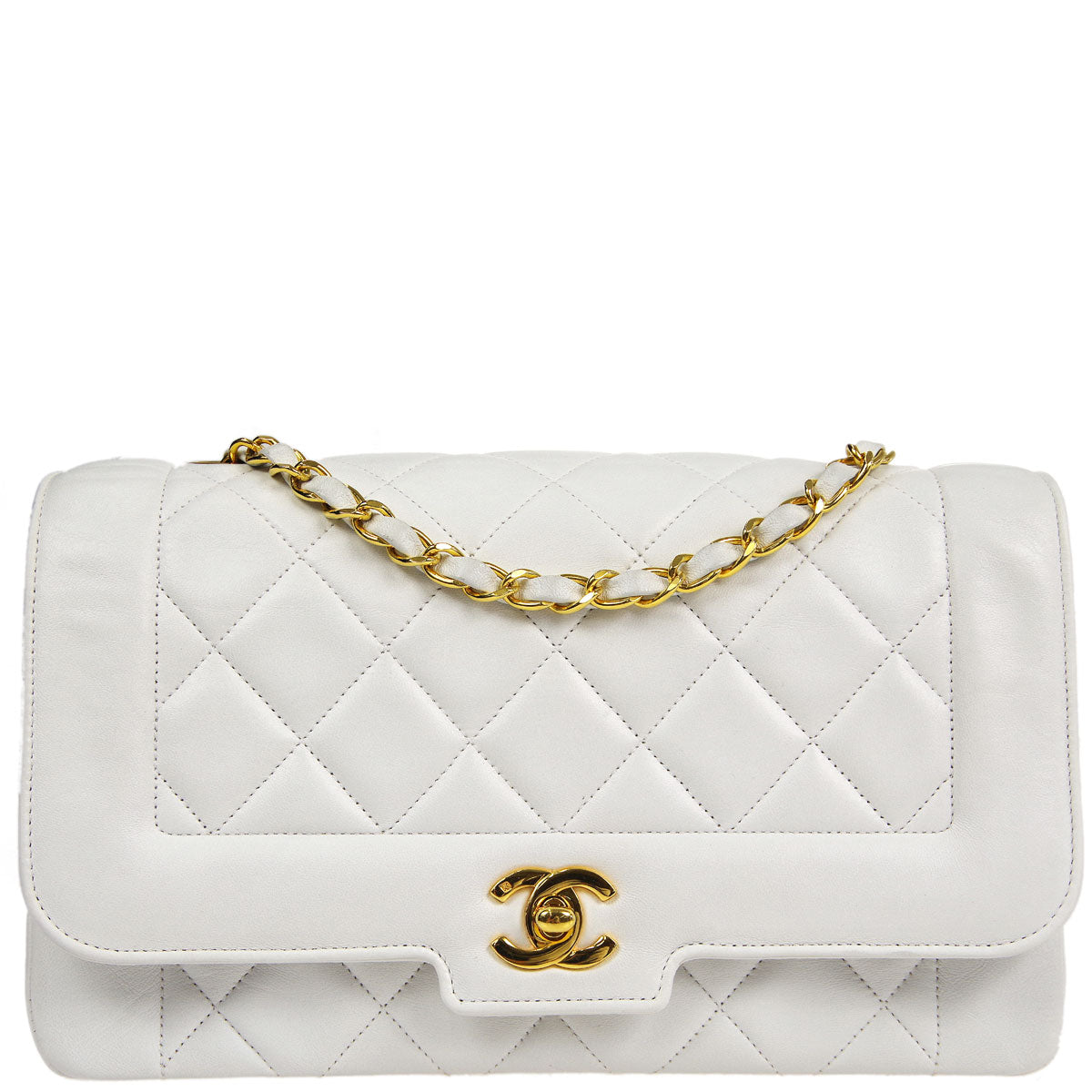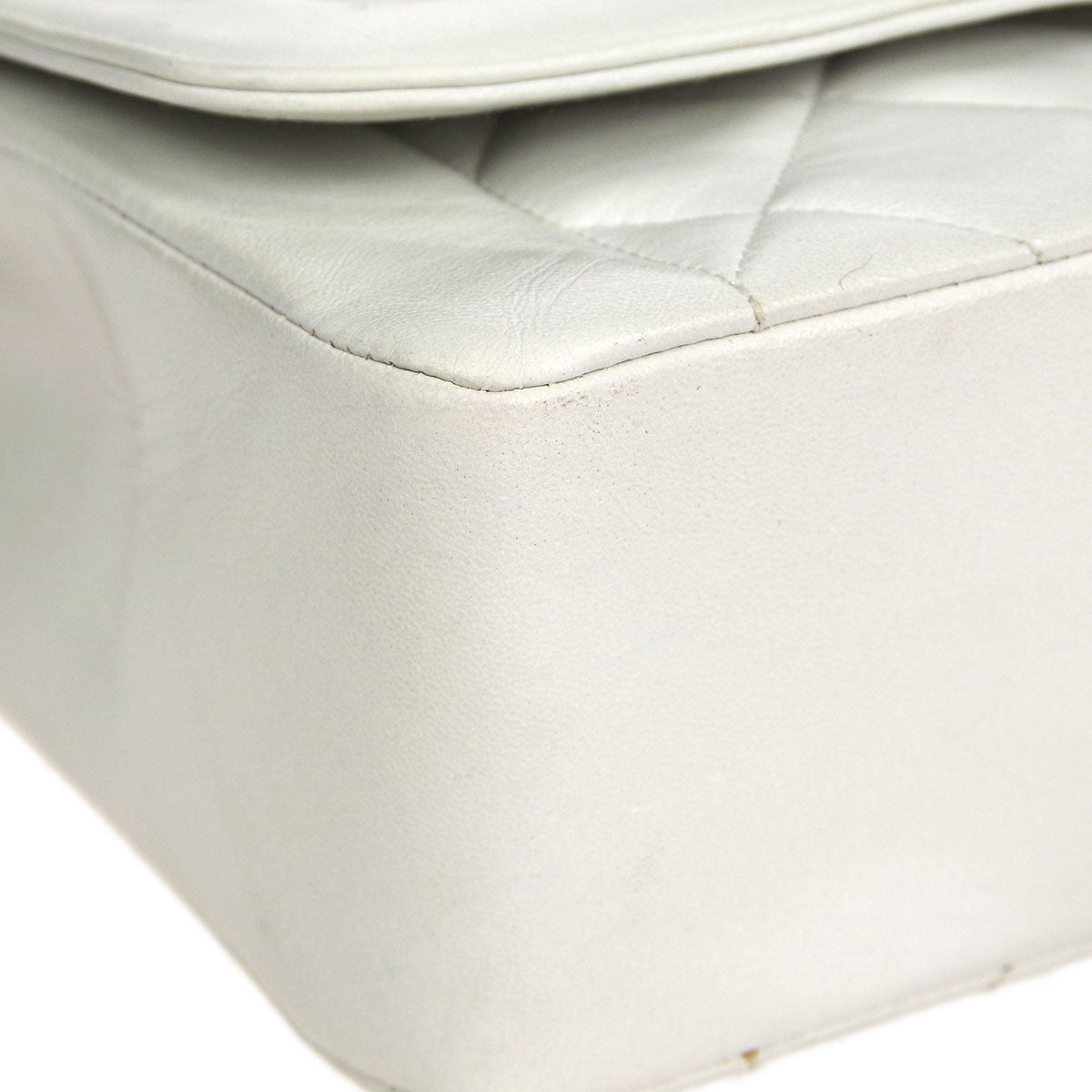 Chanel * Classic Flap Double Chain Shoulder Bag White Lambskin
