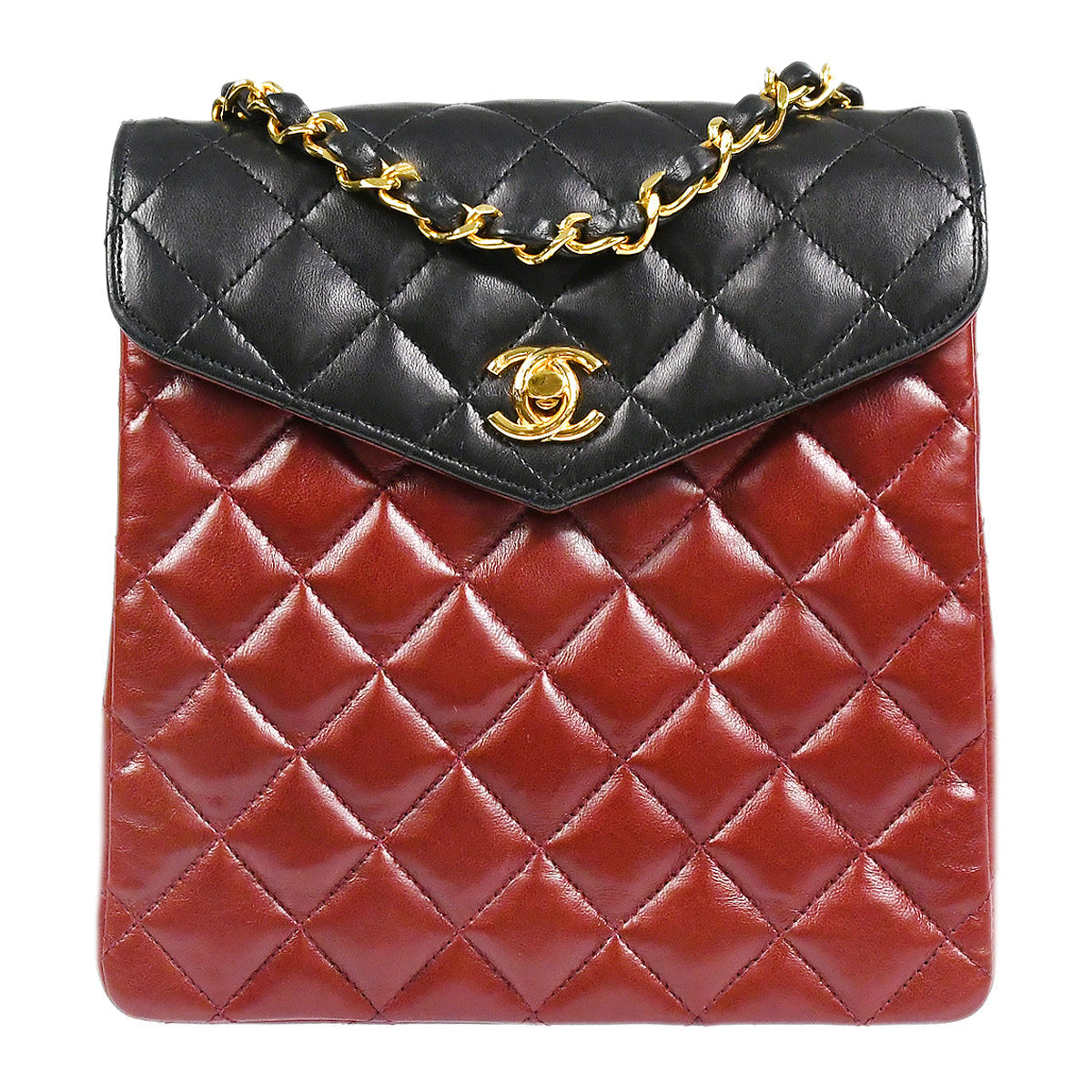 | Chanel Chain Shoulder Bag Bi-Color Red Black Lambskin | |