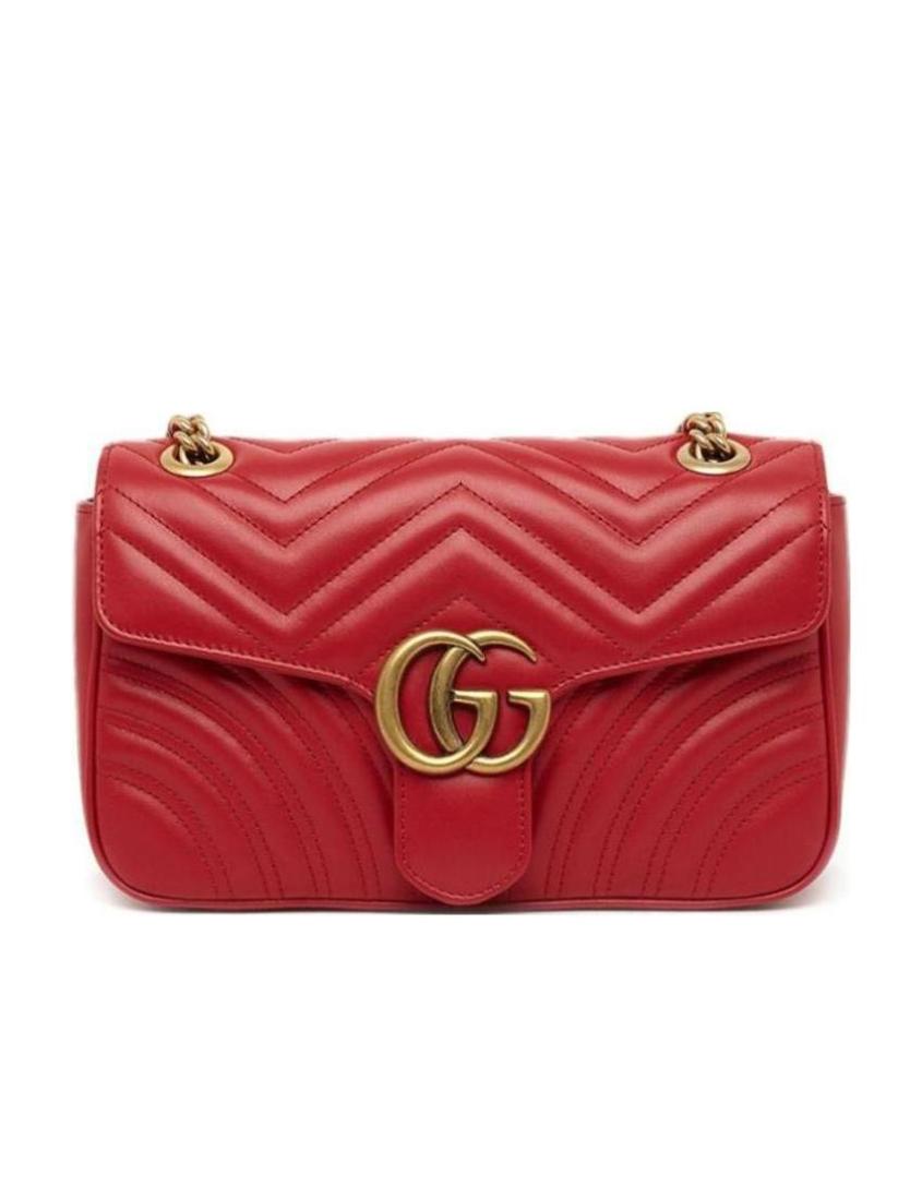Red GG Marmont series small quilted shoulder bag with GG flap decorated with snap closure, gold hardware, internal zipper pocket and chain shoulder strap. Vintage gold metal fittings double G zipper inside pocket slip chain strap can be used as a shoulder strap (55 cm high) or carry handle (30 cm high); this bag can also be crossbody. Spring buckle flap (this item is packaged in a dust bag or box)