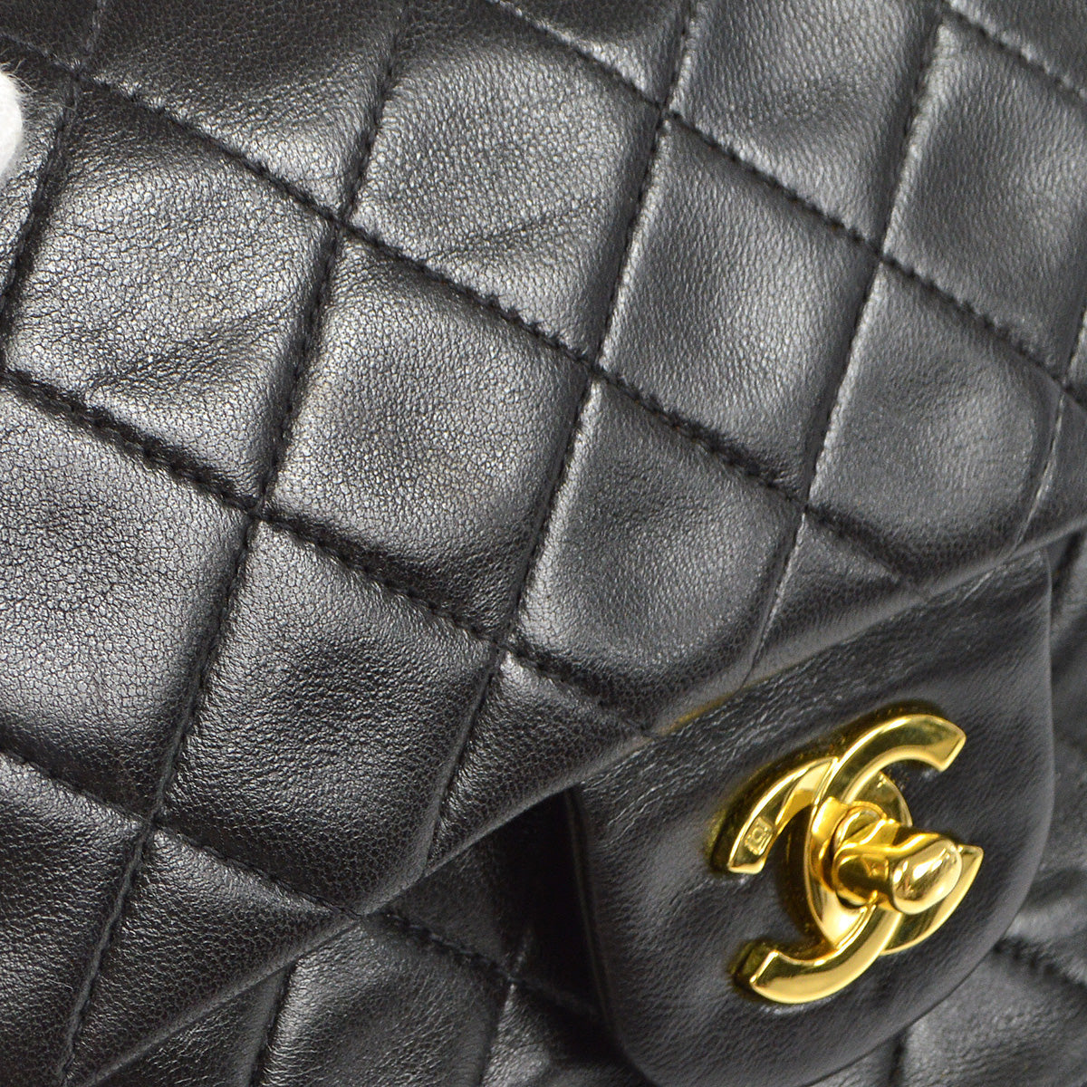 Chanel 1991-1994 Classic Double Flap Small Shoulder Bag Black Lambskin