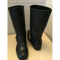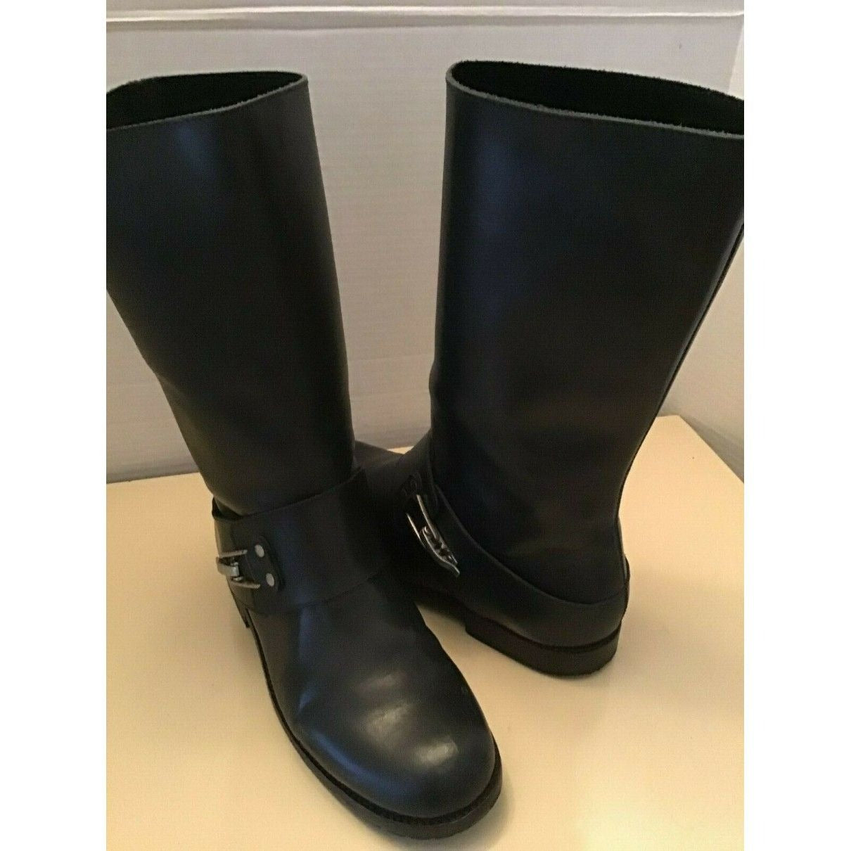 The boots are so cool! They from See by Chloe in a mid-calf high, moto style. The biker style boots are made with black leather, chrome buckles, and they have a 1" block heel! The mid-calf boots have an 11" height with a pull on closure and have a looser fit around your mid-calf of 12". They are very lightly used and were made by See by Chloe, so you know they are great quality, costing ~ $500 new!