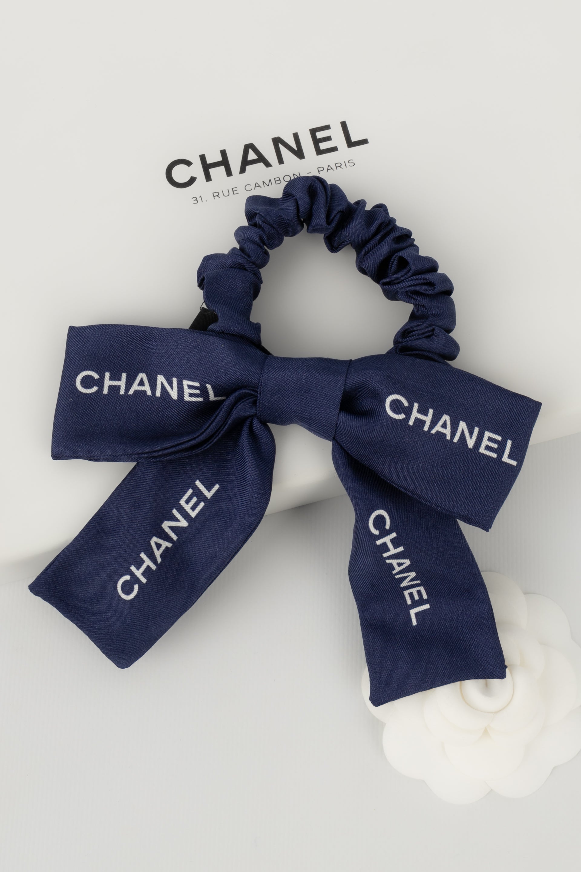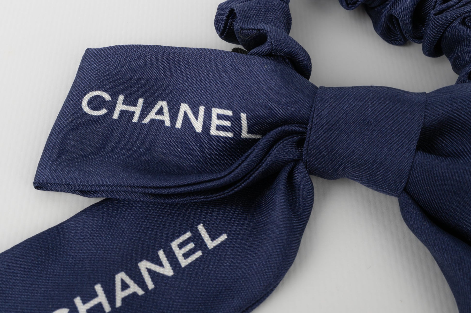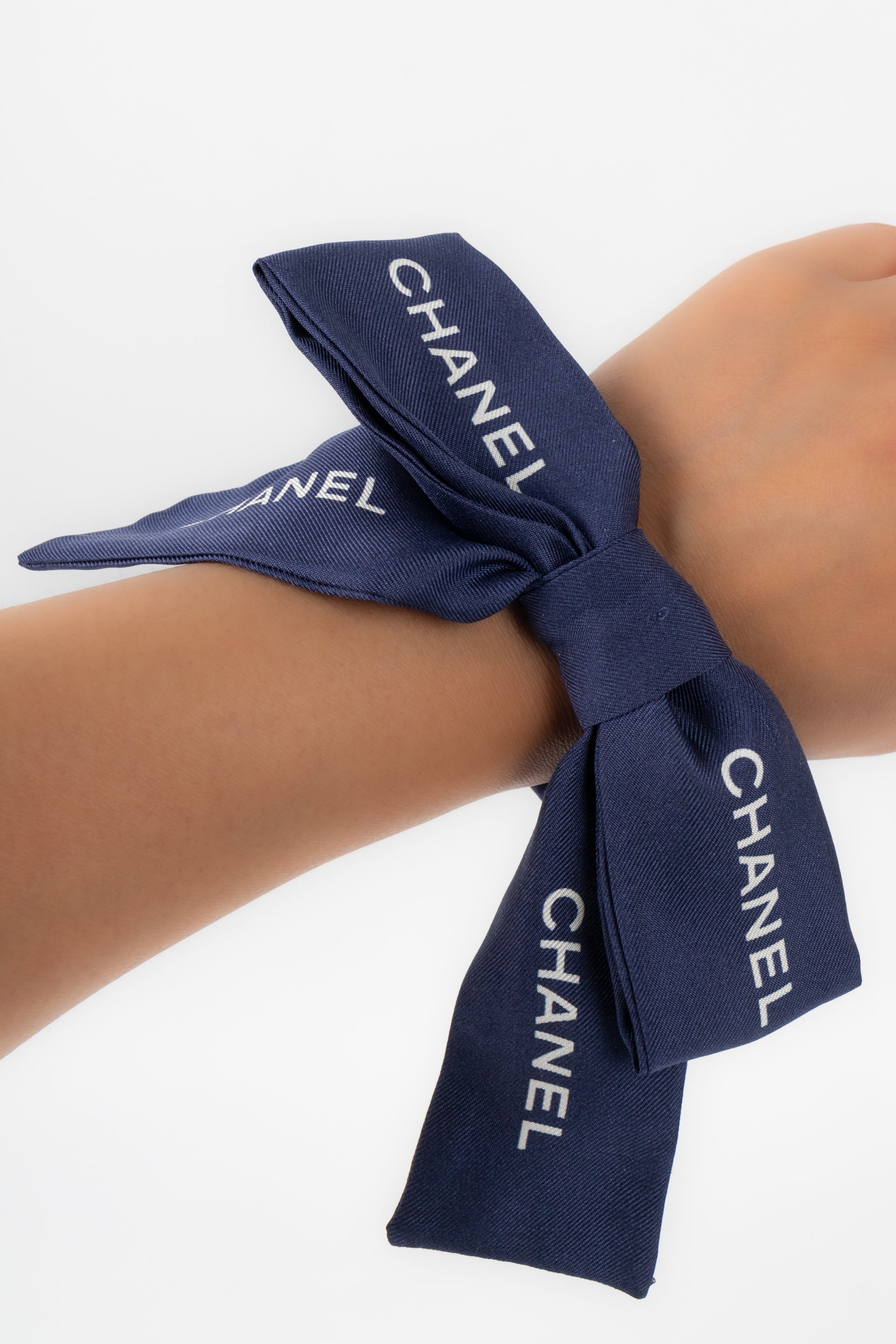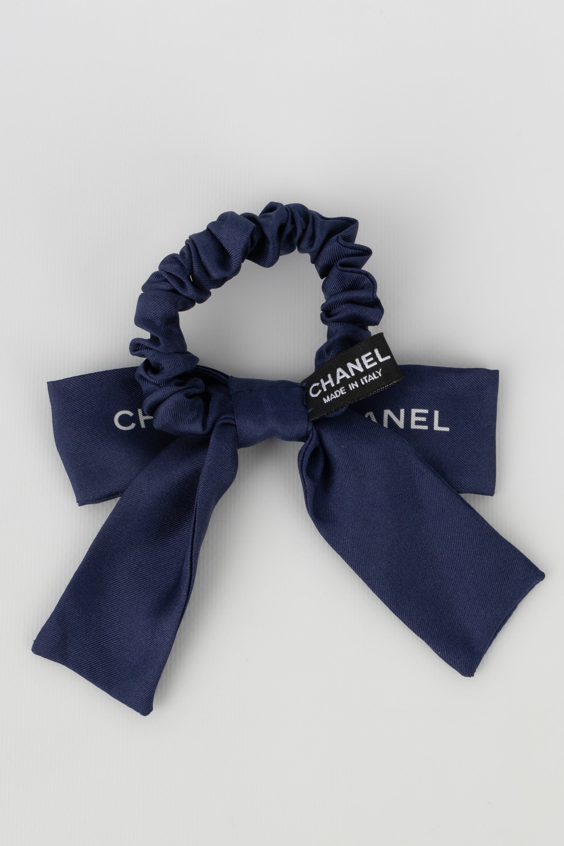 CHANEL -(Made in Italy) Accessoire de tête en soie bleu marine.