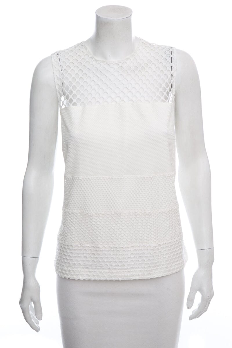 Akris White Net Detail Sleeveless Blouse SZ 14 NWT