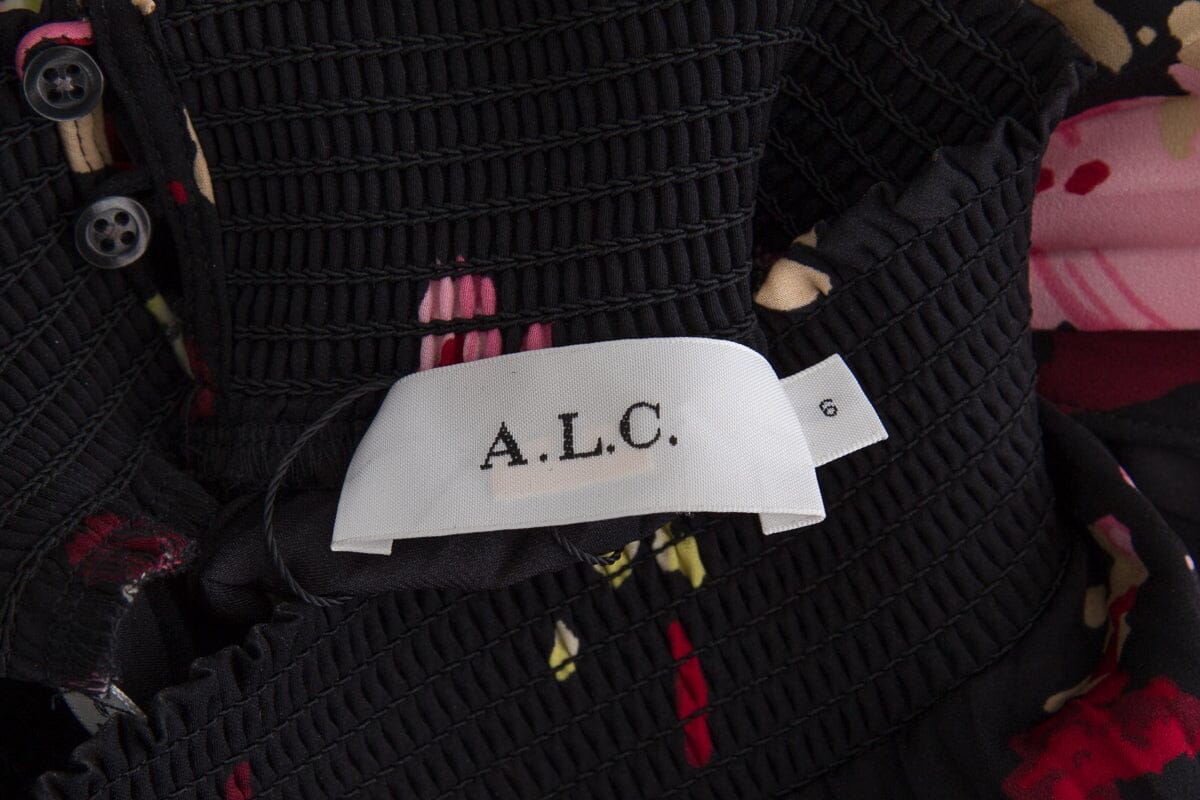 ALC Black Floral Sleeveless Pleat Dress SZ 6