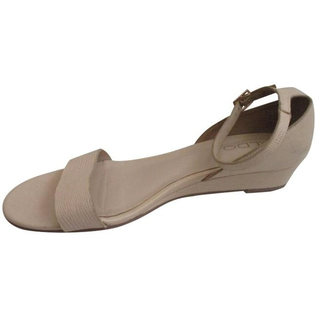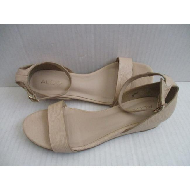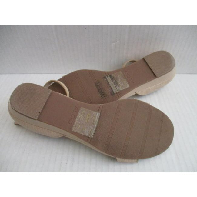 Aldo Beige Pebbled Ankle Strap Flats Sandals Size Us