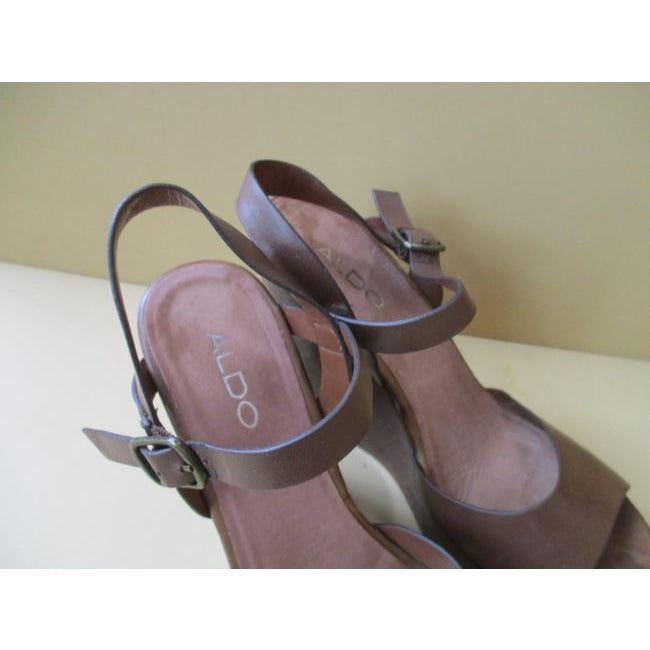 Aldo Brown Woodgrain Ankle Strap Platform Wedge Sandals Size Eu