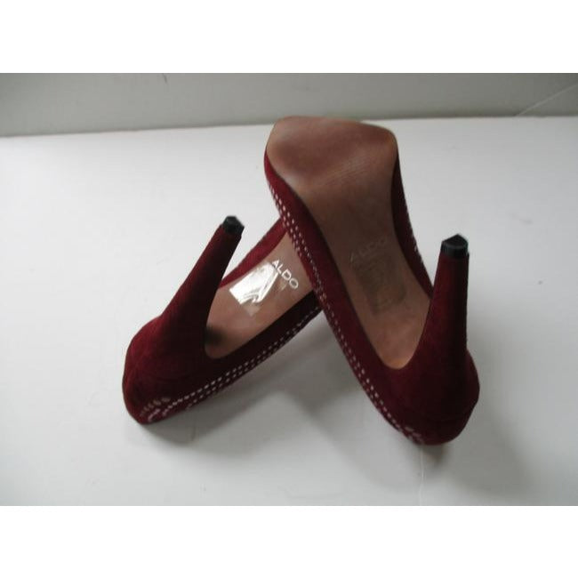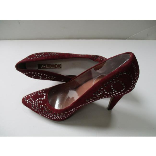 Aldo Burgundy Pewter Brass Studded Surface Pumps Size Us