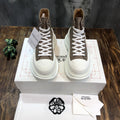 Canvas lace-up boot with a thick oversized rubber tread sole. The boot is detailed with a textured rubber wrap and tonal ALXNDR McQN signature, finished with a signature ribbon on the back of boot. Round toe shape boot silhouette details rubber toe cap.