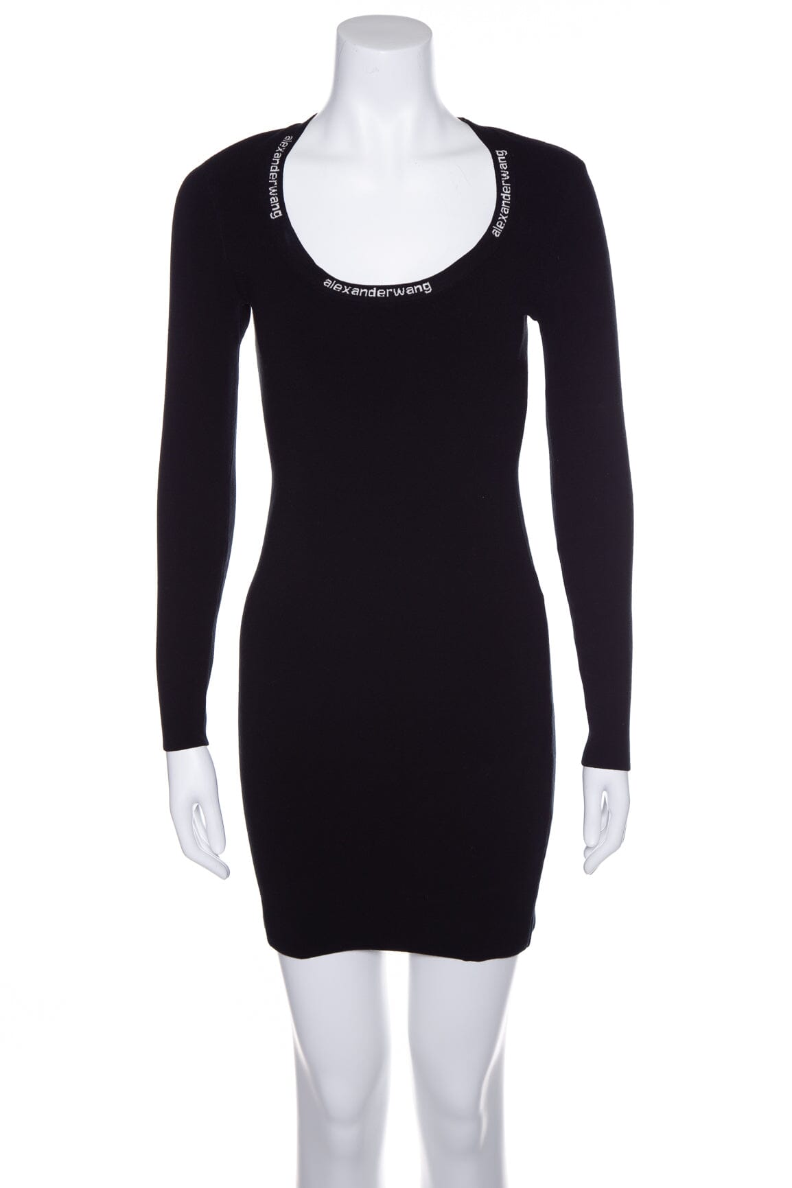 Alexander Wang Black Knit Long Sleeve Logo Collar Dress SZ S NWT
